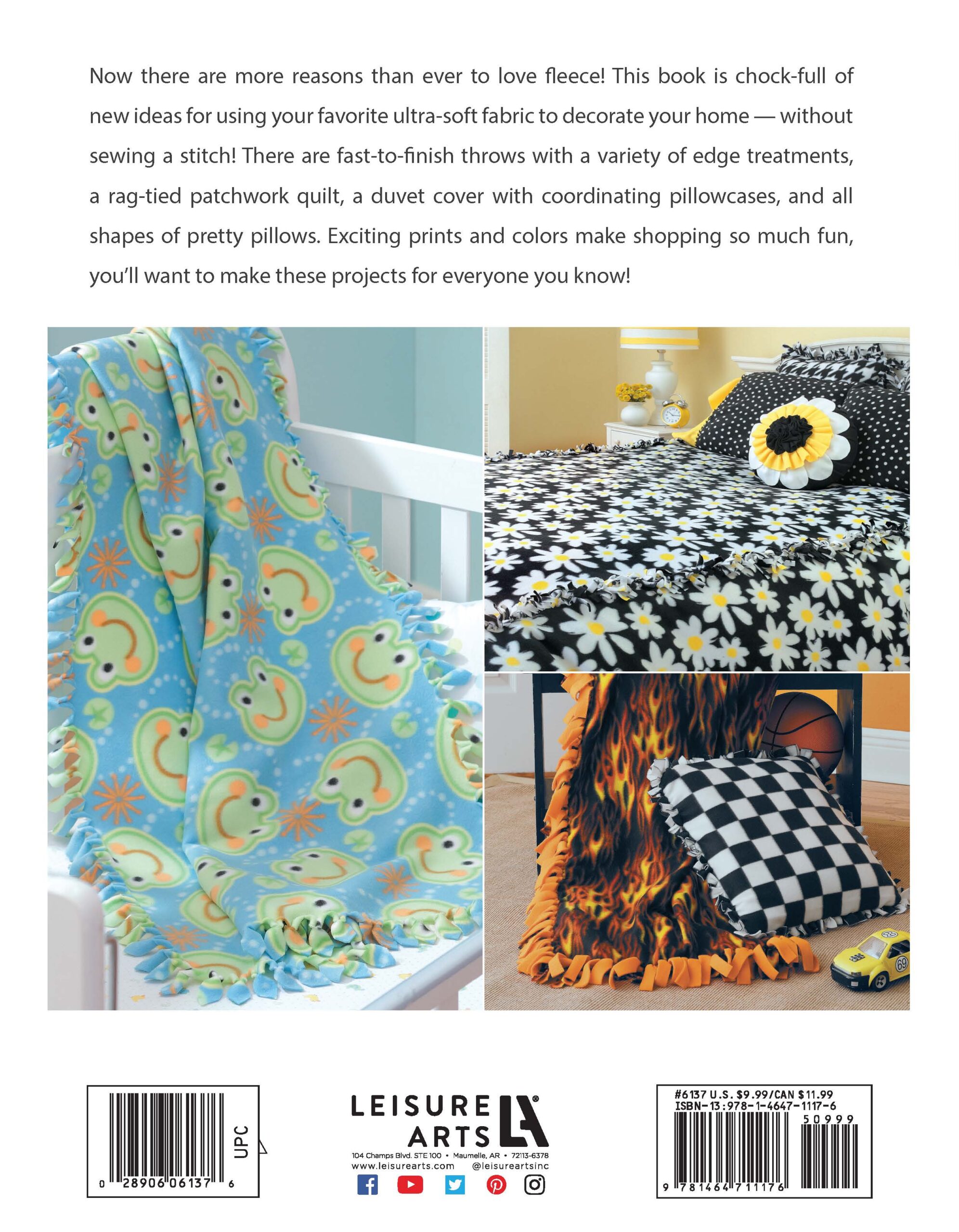 $12.99No Sew Fleece Throws- Create cozy coverings without a stitch. Using bright, cheery colors to ignite a space with style and color, you can create a variety of easy-going fleece throws that don't need any sewing. Designs include: cut-and-fringed throws, floral throws, and more. Then embellish your throws with techniques for: looped fringe, applique, decorative ties, windows, and weavings. 48 pages in a softcover.