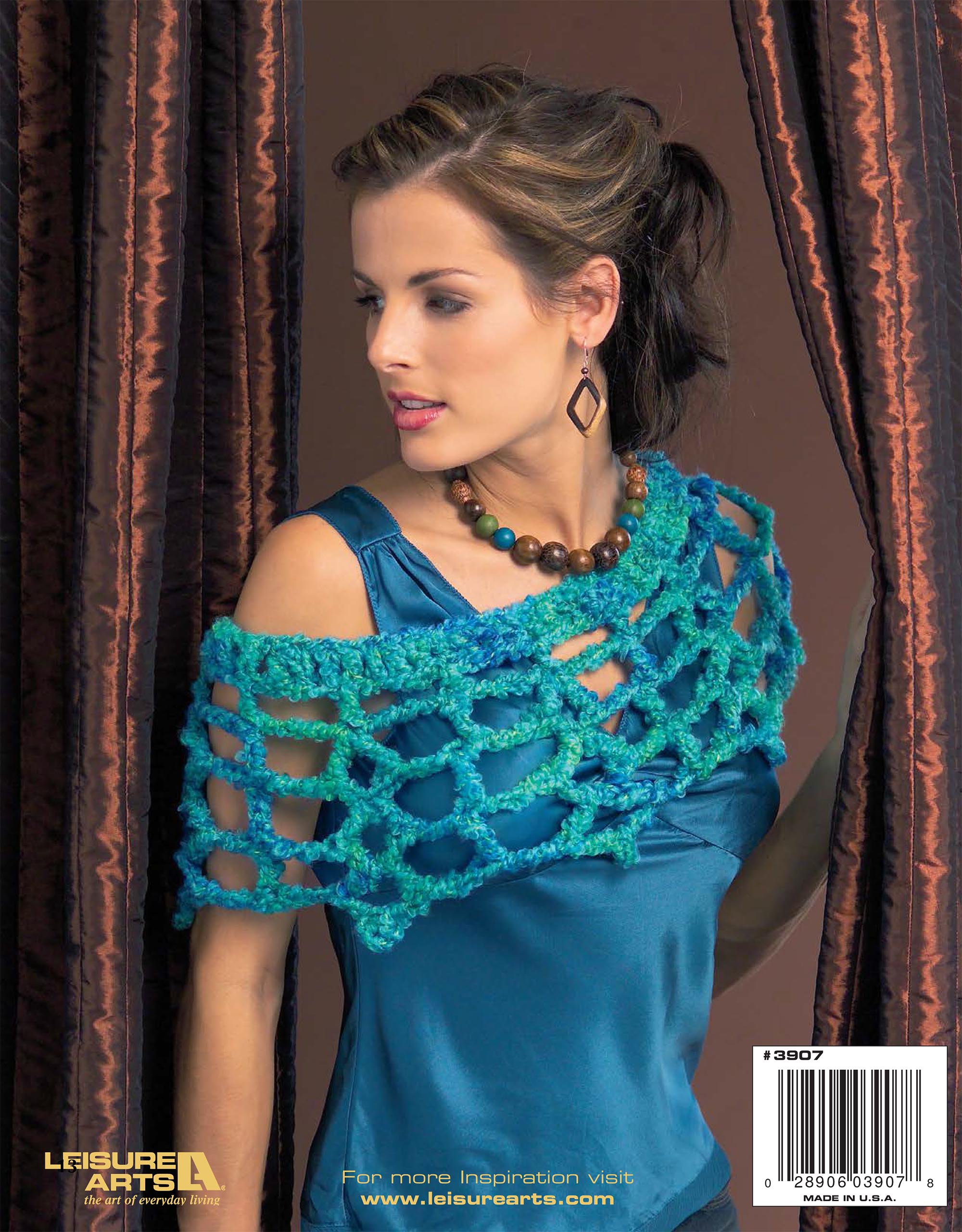Leisure Arts Glamour Wraps Crochet eBook- Little dashes of drama that rest ever-so-lightly on your shoulders, ponchinis are the newest shape of crochet. Fashion the sweet indulgences with specialty yarns in your favorite colors. You'll find that these four designs by Melissa Leapman work up quickly, which makes them excellent for spur-of-the-moment projects. Catch the glow of a lovely rose-centered ponchini, or let the spirit of a special occasion embrace you with the softness of faux fur. Wrap yourself in a net of bold texture, or display a gentle mesh of ribbon yarn, using it to your best advantage. Ponchinis impart an extra bit of flair to any ensemble. Don't miss the chance to look, and feel, this marvelous. 4 Designs: antique rose, confetti, fascination, and faux fur. 14 page PDF download.