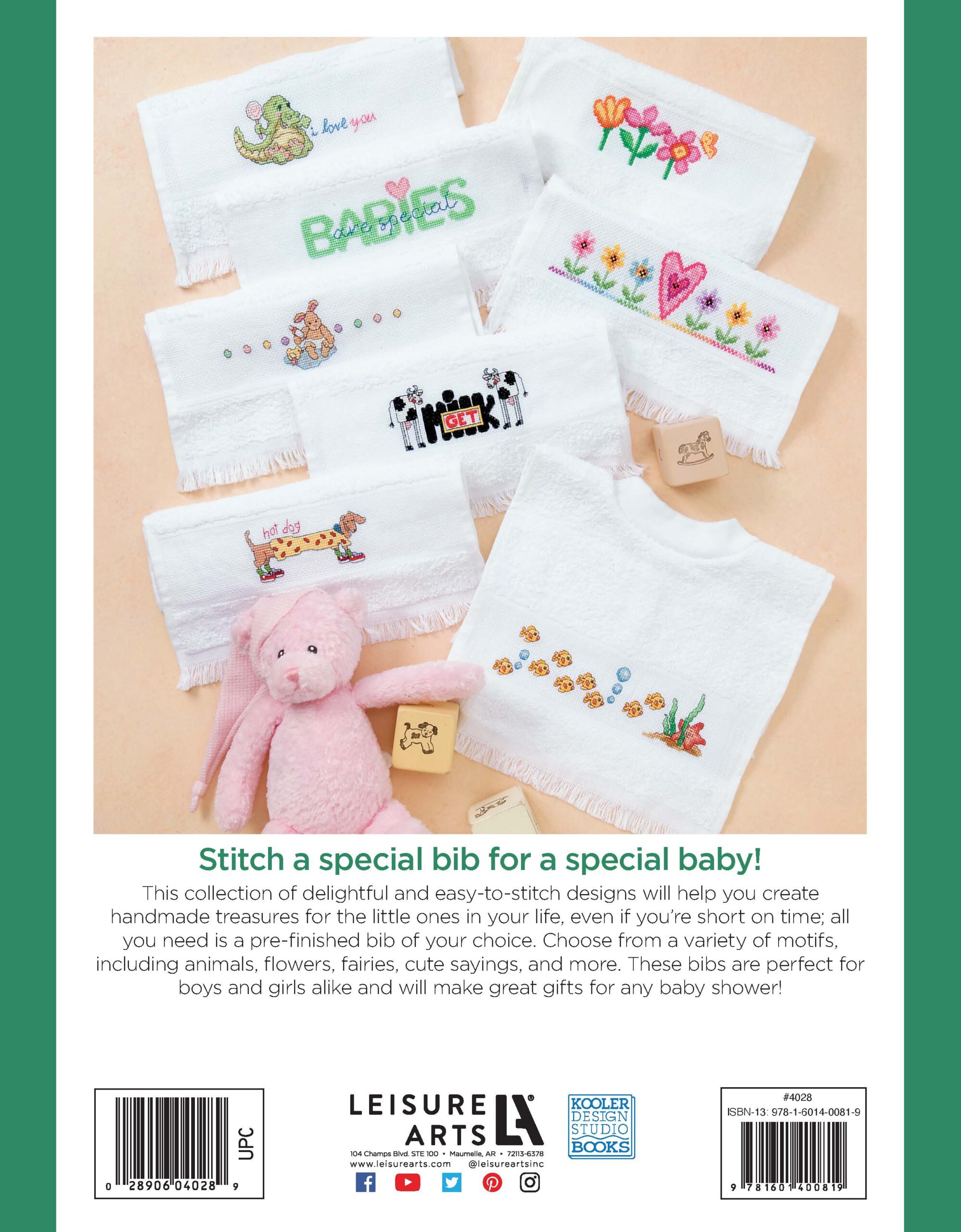 Baby Bibs to Cross Stitch- 25 adorable bibs for your little one will add extra fun to mealtime. Suitable for both boys and girls, the quick and easy designs are ready to cross-stitch on your choice of pre-finished bibs. Handmade with love, these bibs are perfect for welcoming baby or as a shower gift. Designs include: animals, flowers, butterflies, and more. 24 pages, soft cover.