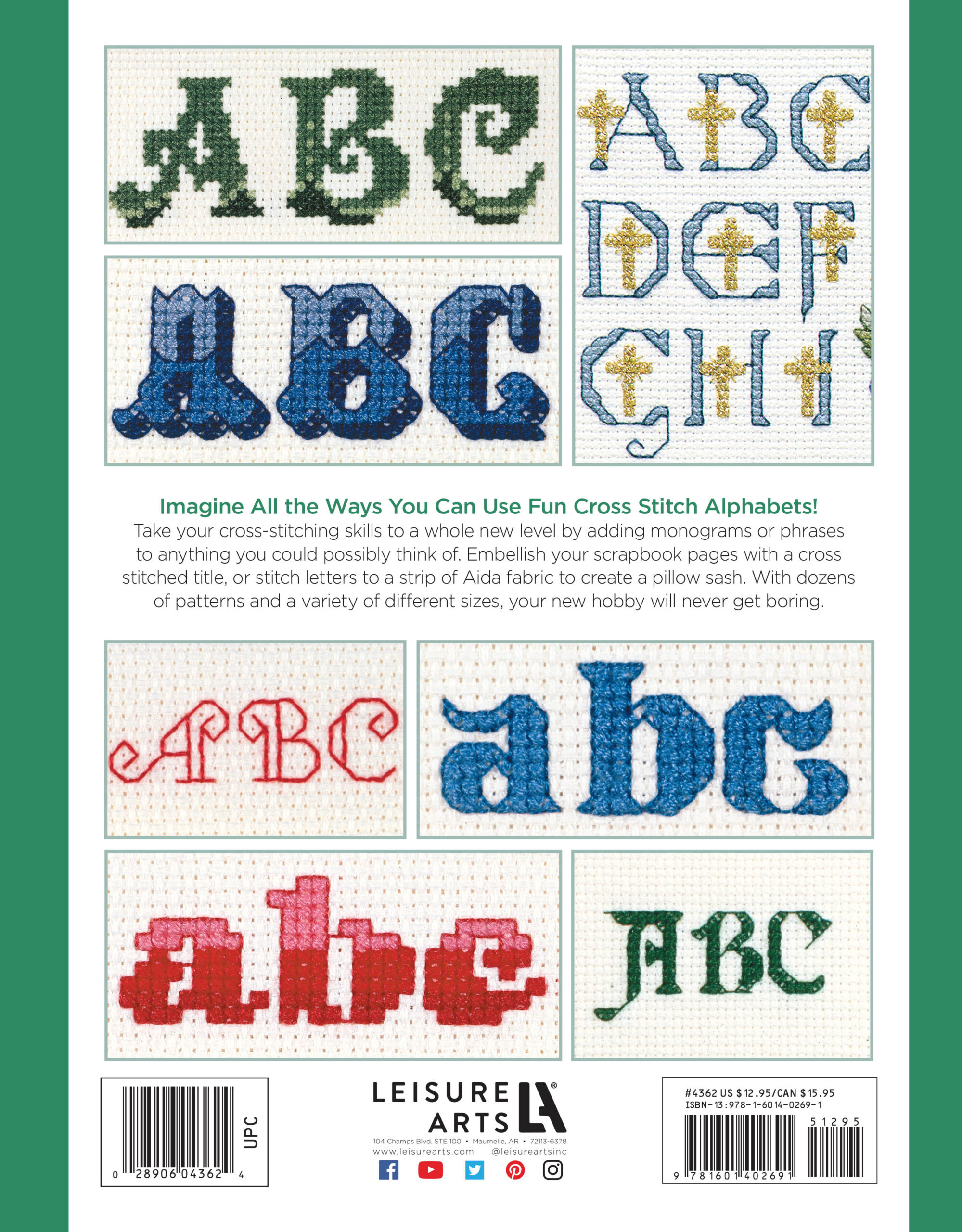 A Big Collection Of Alphabets- Just imagine all the ways you can use these fun cross stitch alphabets. This big of little alphabets has just-right lettering for any stitching project. 140 alphabets designs include: Halloween, flowers, animals, sans-serif, decorative, traditional, shadowed, and more. Counted cross stitch charts. Font sizes vary. 64 pages, soft cover.