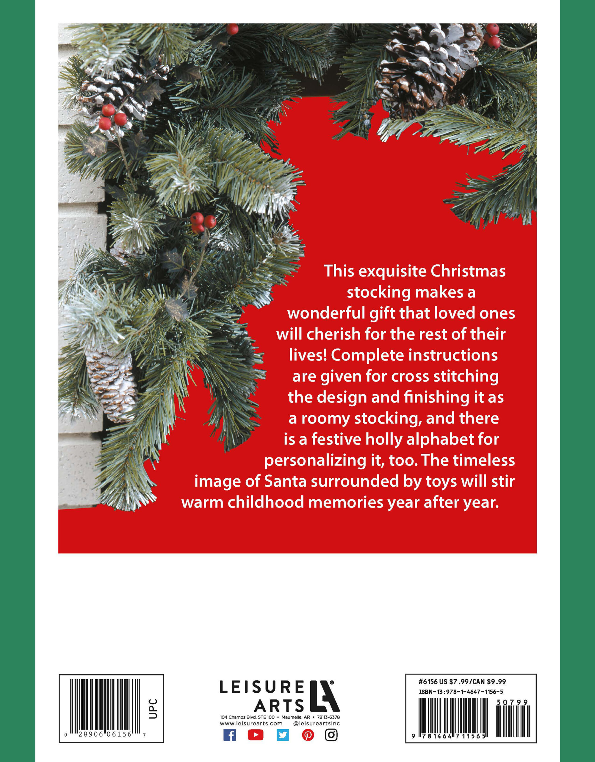 Christmas Stocking Cross Stitch- This exquisite Christmas stocking makes a wonderful gift that loved ones will cherish for the rest of their lives. Complete instructions are given for cross stitching the design and finishing as a roomy stocking. The festive holly alphabet and timeless Santa images will stir warm childhood memories year after year. Stitch on 14, 16, 18 or 22 count fabric. Intermediate skill level. 12 pages, softcover.