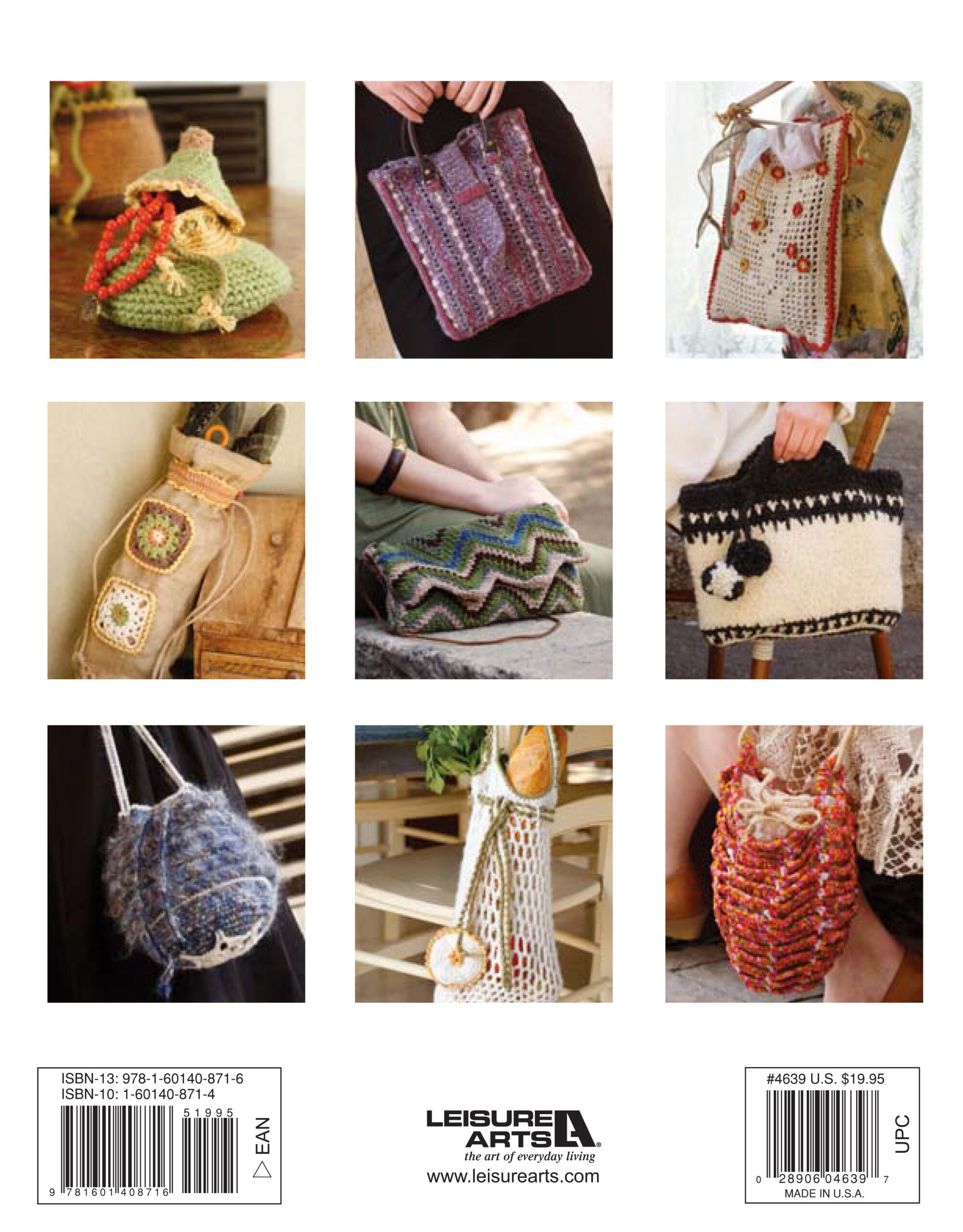 Leisure Arts Crochet Totes and Accessories eBook- Learn to create your own collection of hand-made totes, purses, fashion accessories and more with this comprehensive crochet book. Designs include: elegant pompom purse, stylish grocery tote, spiral change purse, classic campus backpack, Parisian floral purse, blossoming tree lingerie bag and much more. Projects call for size a variety of yarn weights and crochet hooks in US sizes ranging between E-4 and K-10 1/2. Includes a full guide to basic and intermediate crochet stitches with photographed diagrams, plus step-by-step instructions for creating each design. Beginner to intermediate skill level. 132 pages, PDF download.