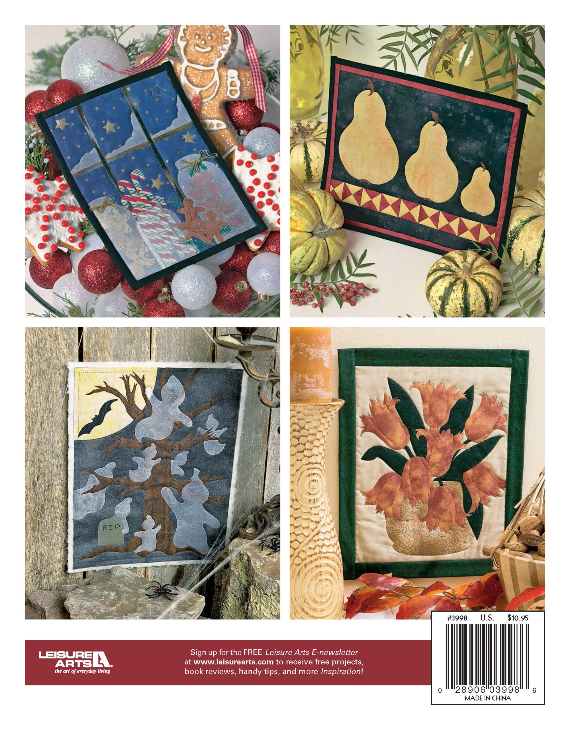 $9.99Leisure Arts Quick & Easy Quilts For Small Spaces eBook- Combine little scraps of fabric to create big fun with this collection of petite quilts. 8 designs include: Halloween, birthday party, follow the star, chicken strips, three pears, visions of sugar plums, the ghost tree, and tulip bouquet. each little quilt is made by applying applique designs to finished fabric panels. Includes step-by-step instructions, diagrams and printable templates for each design, as well as a guide to quilting basics. Finished quilts measure between approximately 5 1/2"x 7 1/2" and 21"x 18 1/2". 43 pages, PDF download.