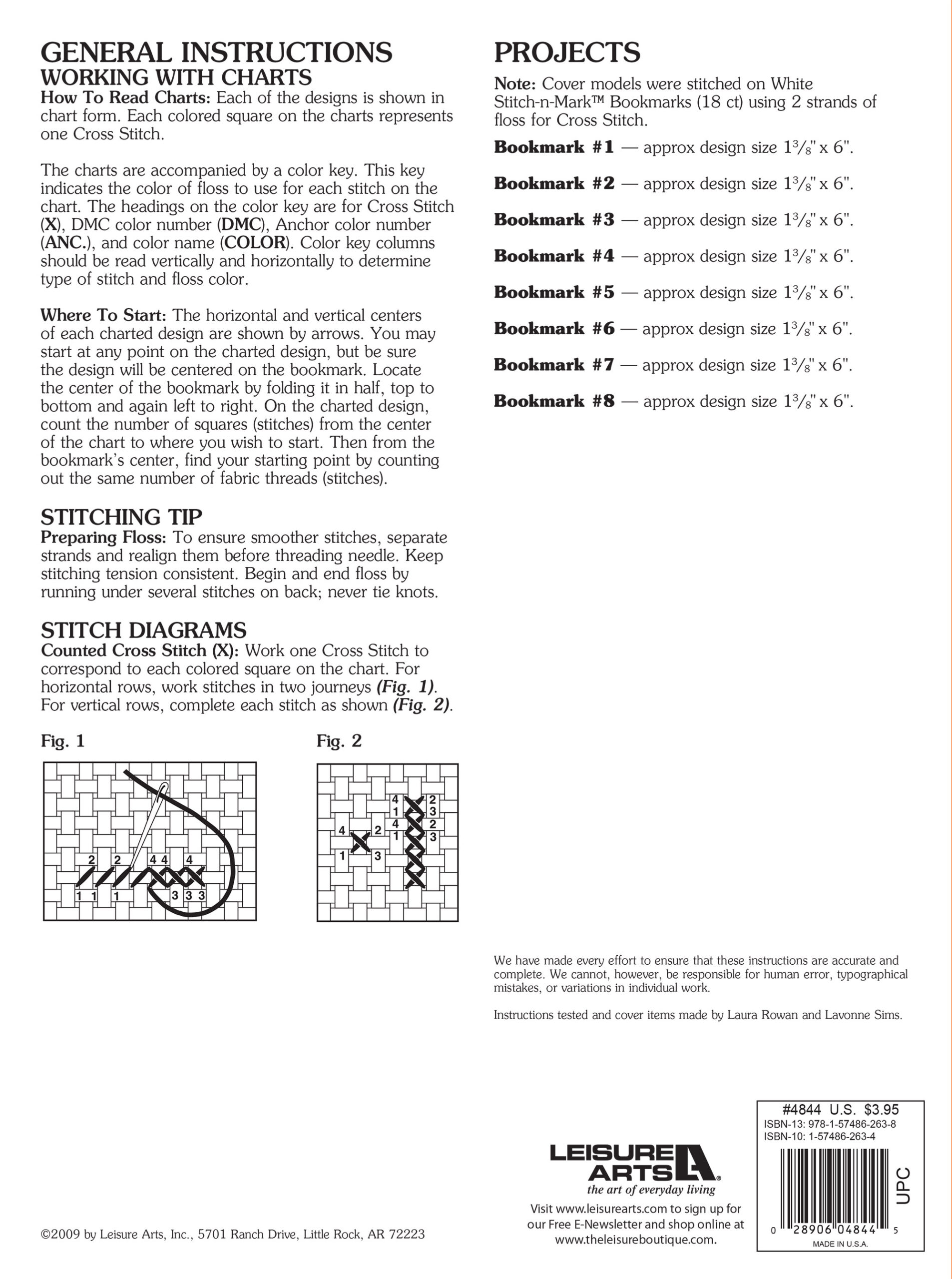 $5.99Leisure Arts Bookmark Jubilee Cross Stitch ePattern- Sweet bookmarks that you can stitch up for any occasion. Designs include bunnies, cats, basketball, a cow, a snowman and more. Captions include: share a book with a friend, curl up with a book, read the long ones and more. Includes a full color chart for each design and a general guide to cross stitch with illustrated stitch diagrams. Finished book marks measure between approximately 1"x 4 3/4" and 1 3/8"x 5 3/8" when stitched on 16 count fabric. Originally published in Leisure Arts Leaflet 2238, Kathie's Bookmark Jubilee. 5 pages, PDF download.