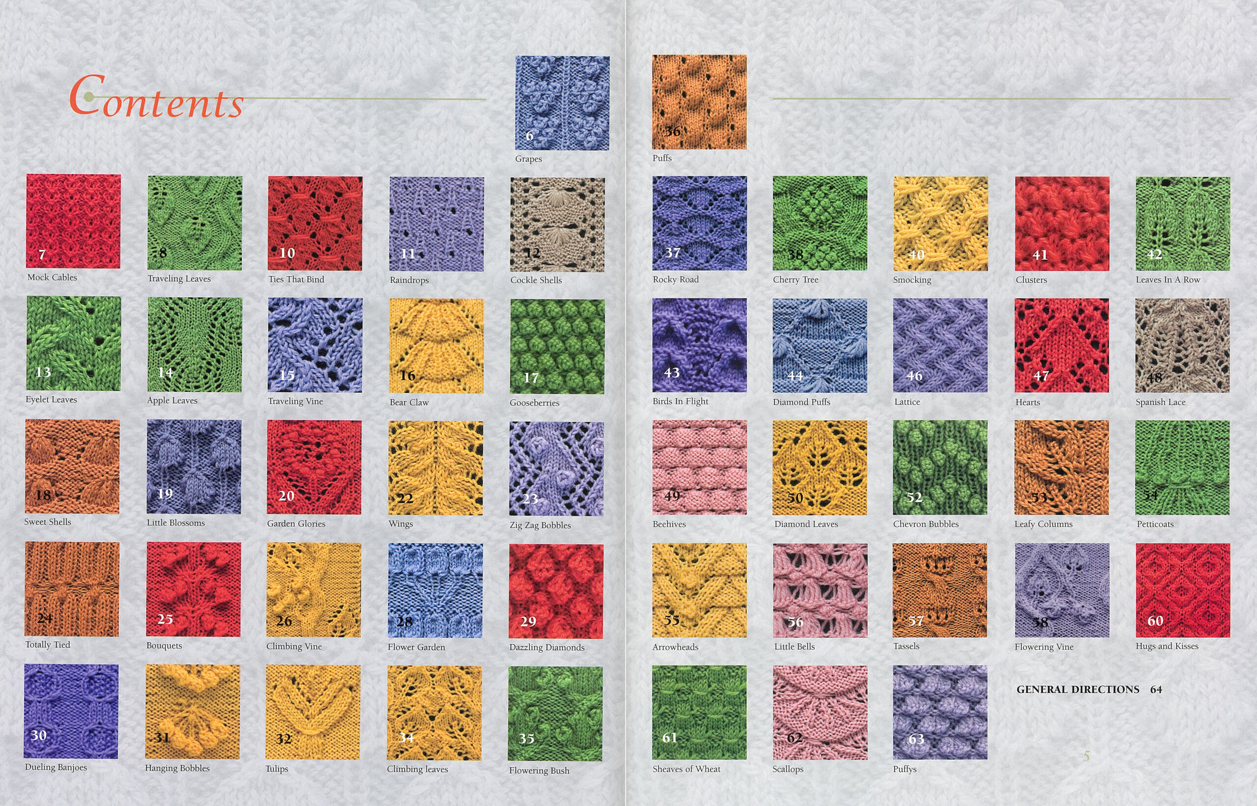 50 Fabulous Knit Stitches- Part of the pleasure of knitting is discovering and experimenting with beautiful new stitches. This collection of 50 fabulous knits is a fantastic companion for your journey of stitch exploration. Designs include: puffs, cockle shells, diamond leaves, zig zag bobbles, Spanish lace, and more. 64 pages, soft cover.