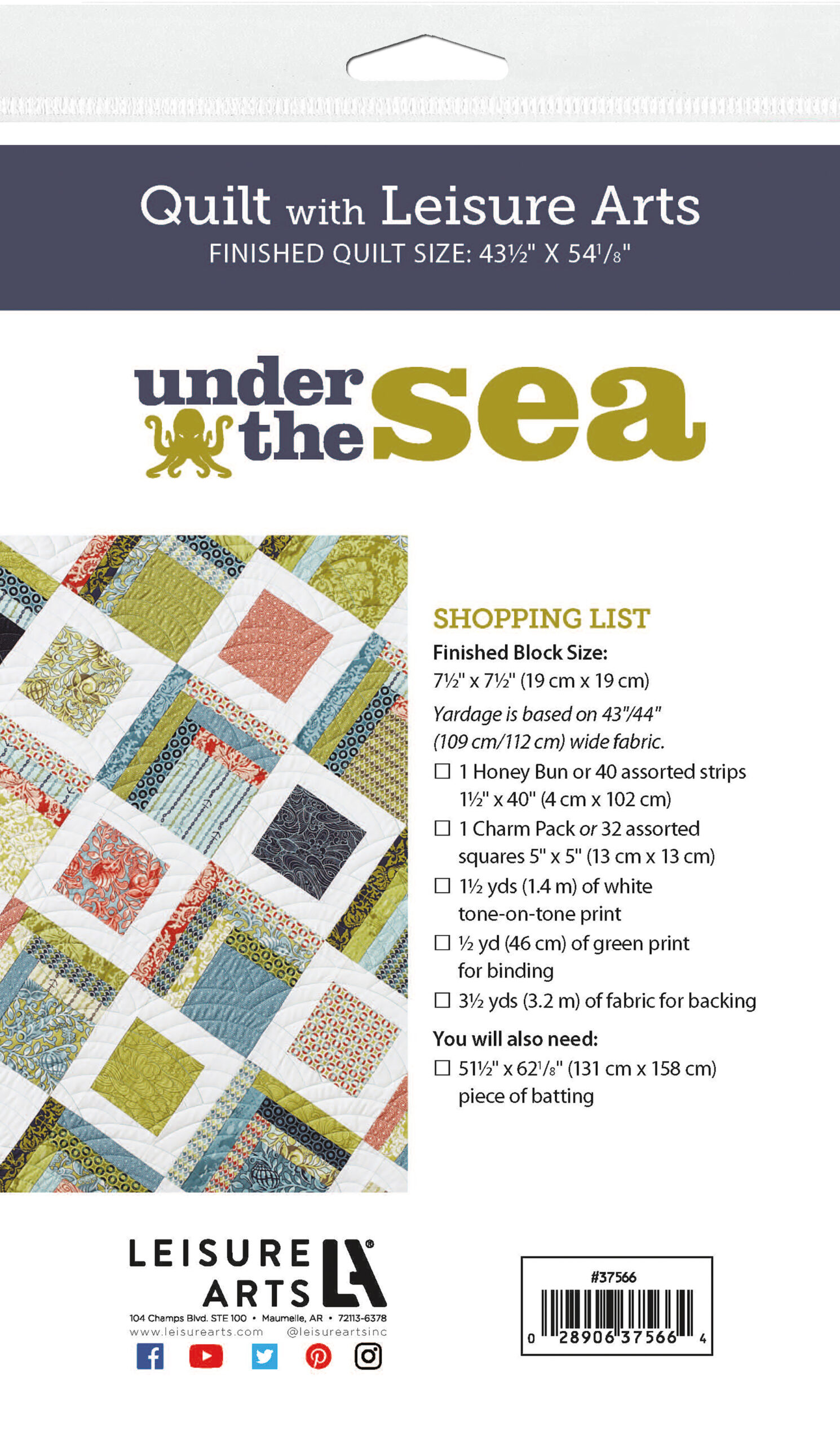 $7.99Leisure Arts Under The Sea Quilt Pattern- Relax with a white on white setting plus calming seaside hues. Quilt design features simple blocks made from squares with interlocking strips. Bonus pillow design features a patchwork collections of squares, and is a perfect beginner project. Includes step-by-step project instructions and a general guide to quilting that covers fabrics, rotary cutting, piecing and pressing, quilting, making a hanging sleeve and much more. Finished quilt measures approximately 43 1/2"x 54 1/8" with 7 1/2"x 7 1/2" blocks. 17 page, softcover, pocket sized booklet.