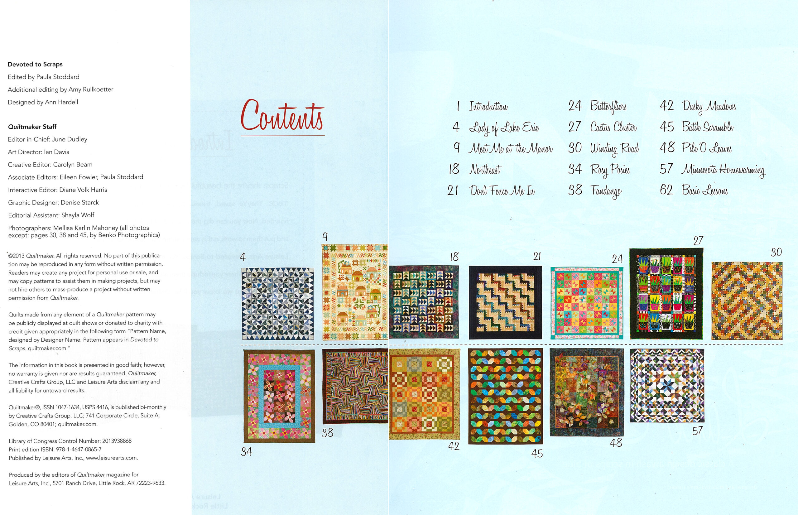 Best of Quiltmaker Devoted to Scraps- Scraps are the beautiful by-product of quilts. They’re saved, treasured, petted, and sometimes hoarded. Dig them all out of their hiding places and put them to work in this new volume from Quiltmaker Magazine. You may choose a kitchen-sink approach where you include them all, or a more controlled color recipe, but we know you’ll be thrilled to use up those last bits of bliss. 13 designs include: meet me at the manor, northeast, butterflies, cactus cluster, and more. 64 pages, soft cover.
