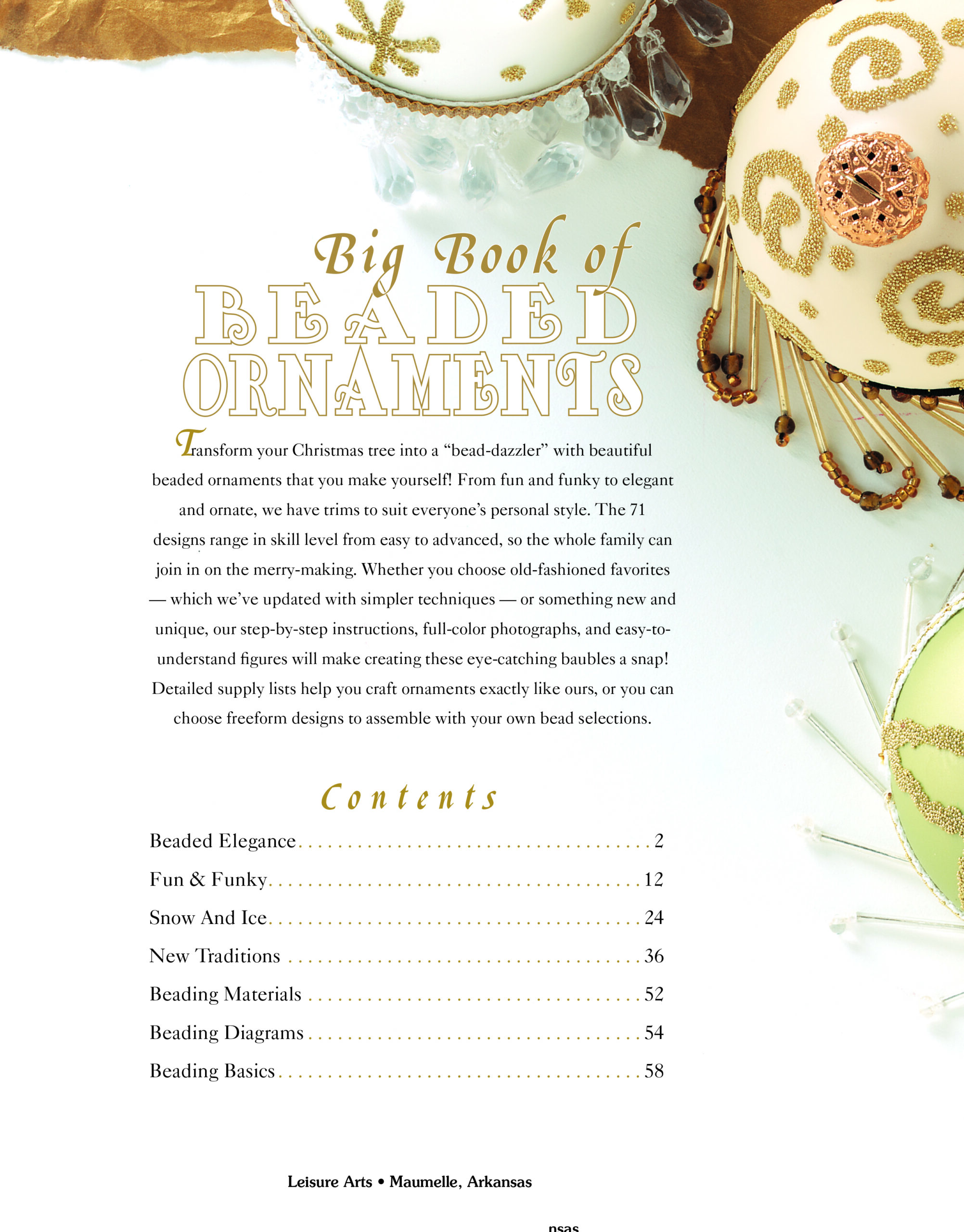 Big of Beaded Ornaments- Transform your Christmas tree with these 71 beautiful, beaded ornaments that you can make yourself! From fun and funky to elegant and ornate, we have trims to suit everyone’s personal style. Designs range in skill level from easy to advanced, so the whole family can join in on the merry-making. Our step-by-step instructions and easy-to-understand figures will make creating these eye-catching baubles a snap! Beginner to advanced skill level. 60 Pages. Softcover
