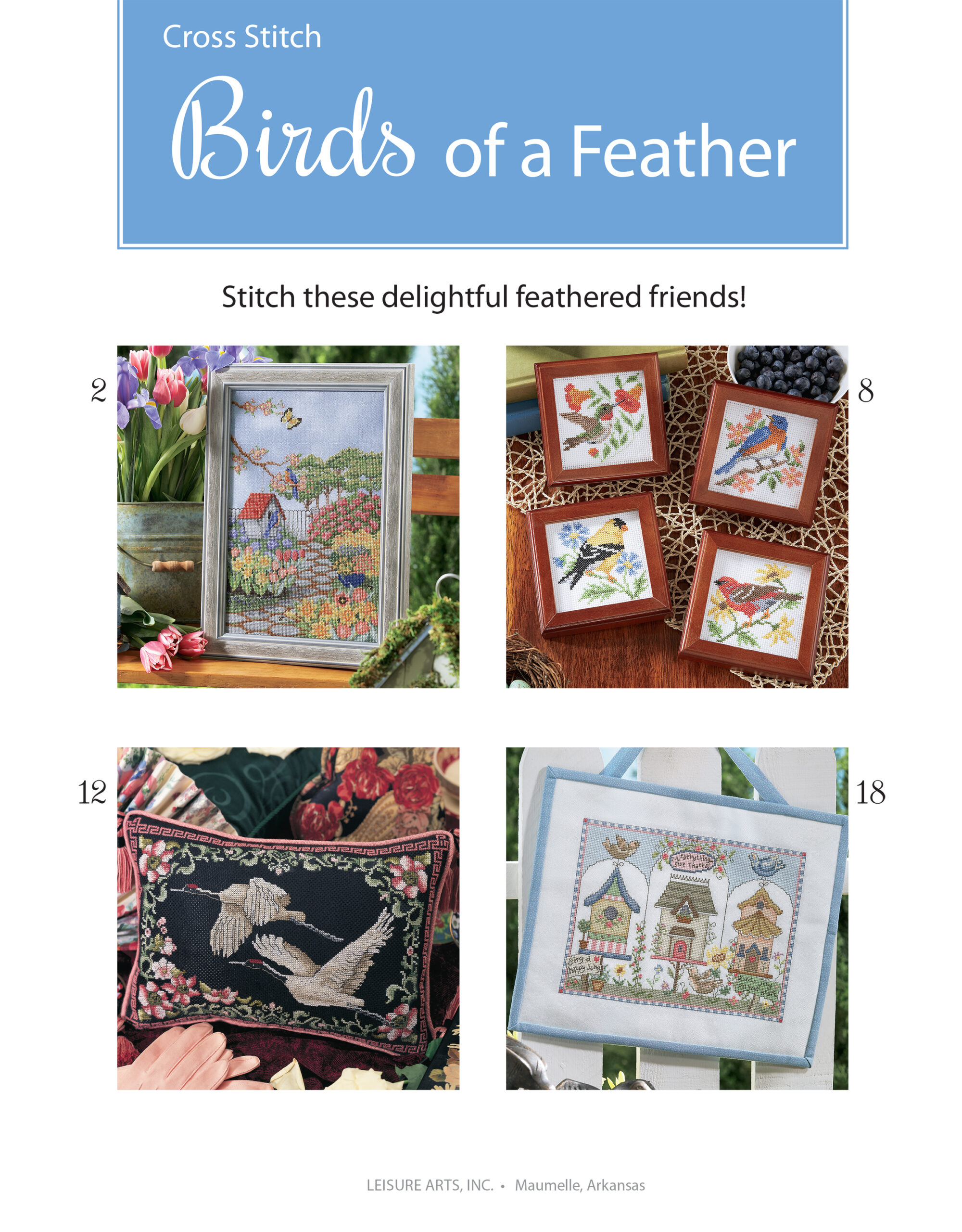 Birds of A Feather Cross Stitch- These stunning bird designs have flocked together to create the perfect collection for your home decor needs. Choose from a set of pretty coasters, birds fluttering along a lovely garden path, elegant cranes in flight, and adorable songbirds and their houses. These Herrschners designs are perfect for pillows, wall decor, purses, and much more. 24 pages, soft cover.