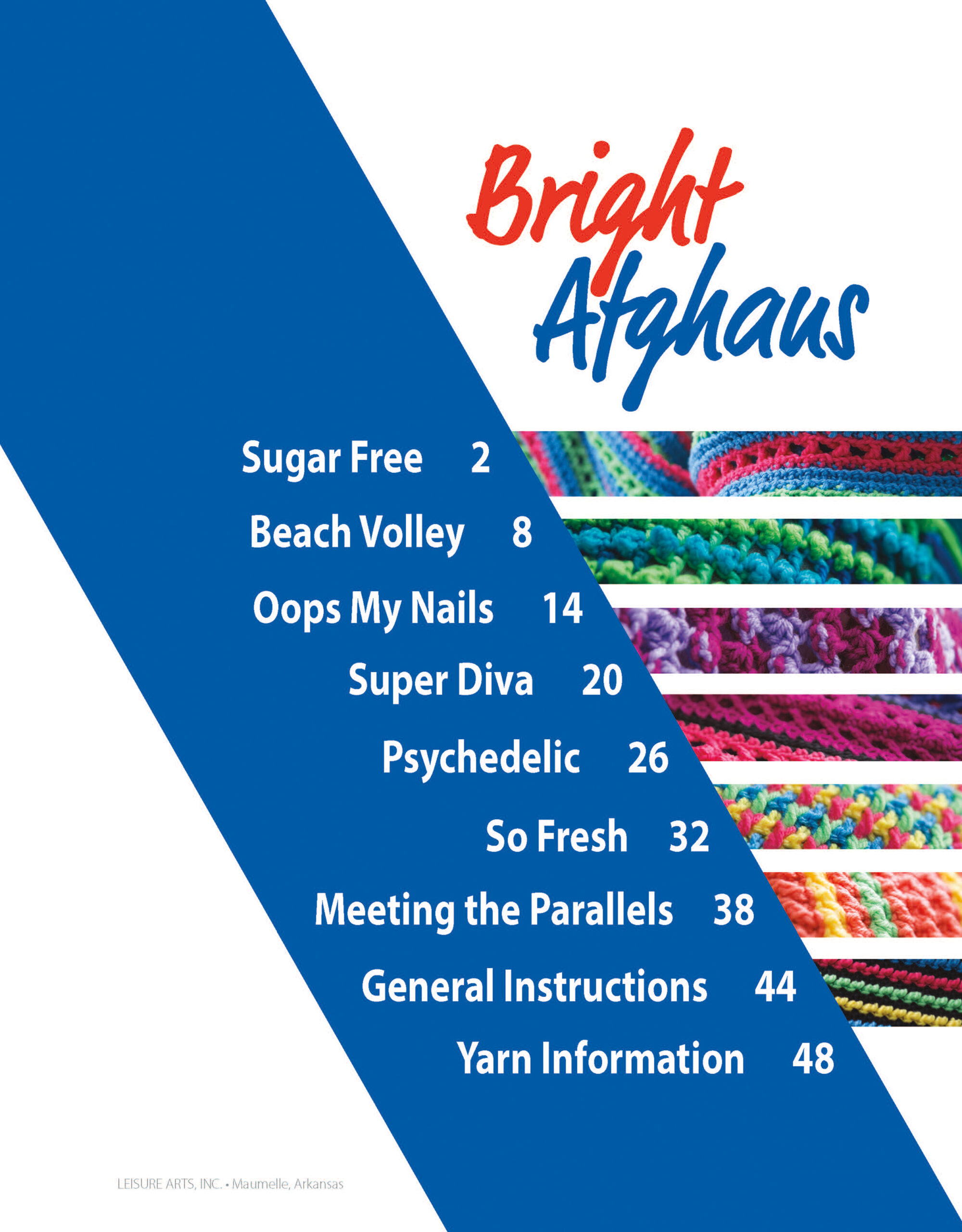 Bright Afghans Crochet- Add a splash of color to your decor. These 7 gorgeous afghans will inject vibrancy to any room you put it in or make someone’s day brighter. Each design has its own flare and texture so you can expand your crocheting skills as you go. Step-by-step instructions for all 7 beginner projects make it easy for any skill level to complete these projects. Designs include: beach volley, super diva, psychedelic, meeting the parallels, and more. 48 pages, soft cover.