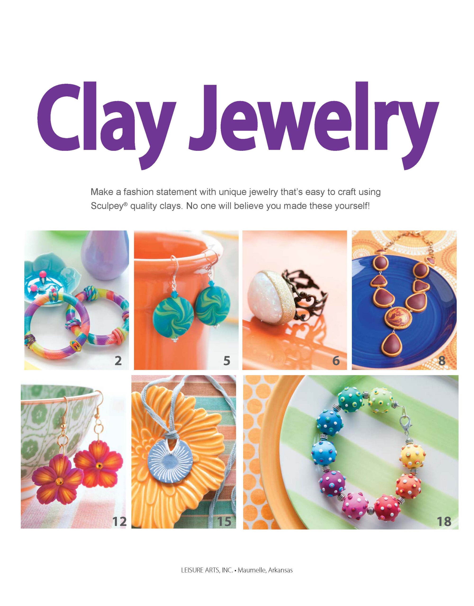 $7.99Leisure Arts Clay Jewelry Book- Wear newly fashioned jewelry designs in little to no time when you customize and accessorize these 17 designs. Inside, you will find six sections to guide you through the basics of clay painting, cut outs, free form, and texture. Beginner skill level with easy-to-follow instructions. 24 pages, softcover.