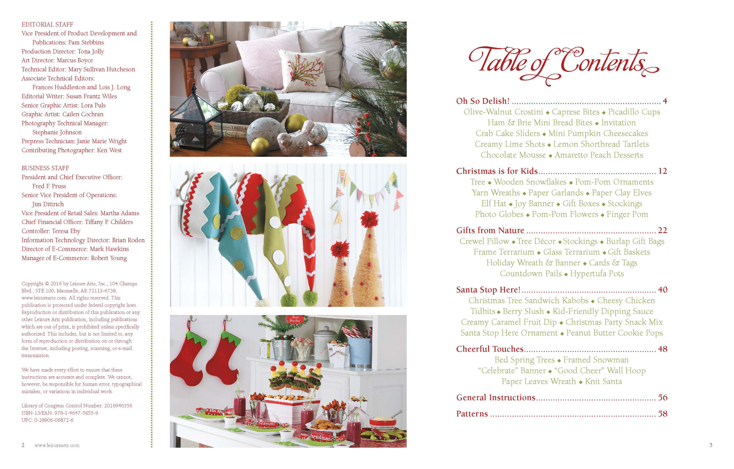 Open House Merriment- The holidays are the perfect time to delight your family and guests with cheery decorations and delicious treats. This handy is filled with fun ideas and foods to please all ages. Quick and easy crafts let you spruce up the house with festive accents, and simple recipes make it a breeze to serve a sensational sampling of appetizers and desserts. Designs include: terrariums, wall hangings, gift wrap, sandwich skewers, and more. 64 pages, soft cover.