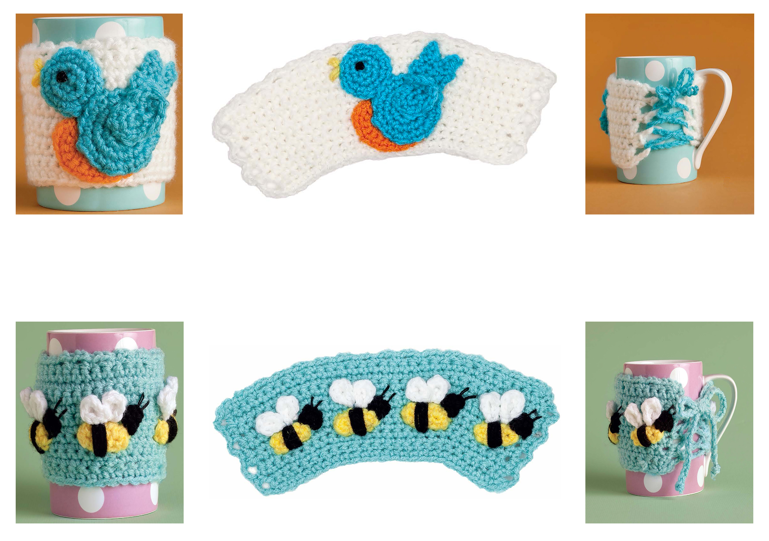 Cup Cozies Crochet- Warm hearts and safeguard fingers from hot cups with crochet cup cozies. Great for novice crocheters, there is a style and design for everyone among the 12 different designs. Designs include: bluebird, bumblebee, cat, elephant, fox, and more. 48 pages, soft cover pocket size.