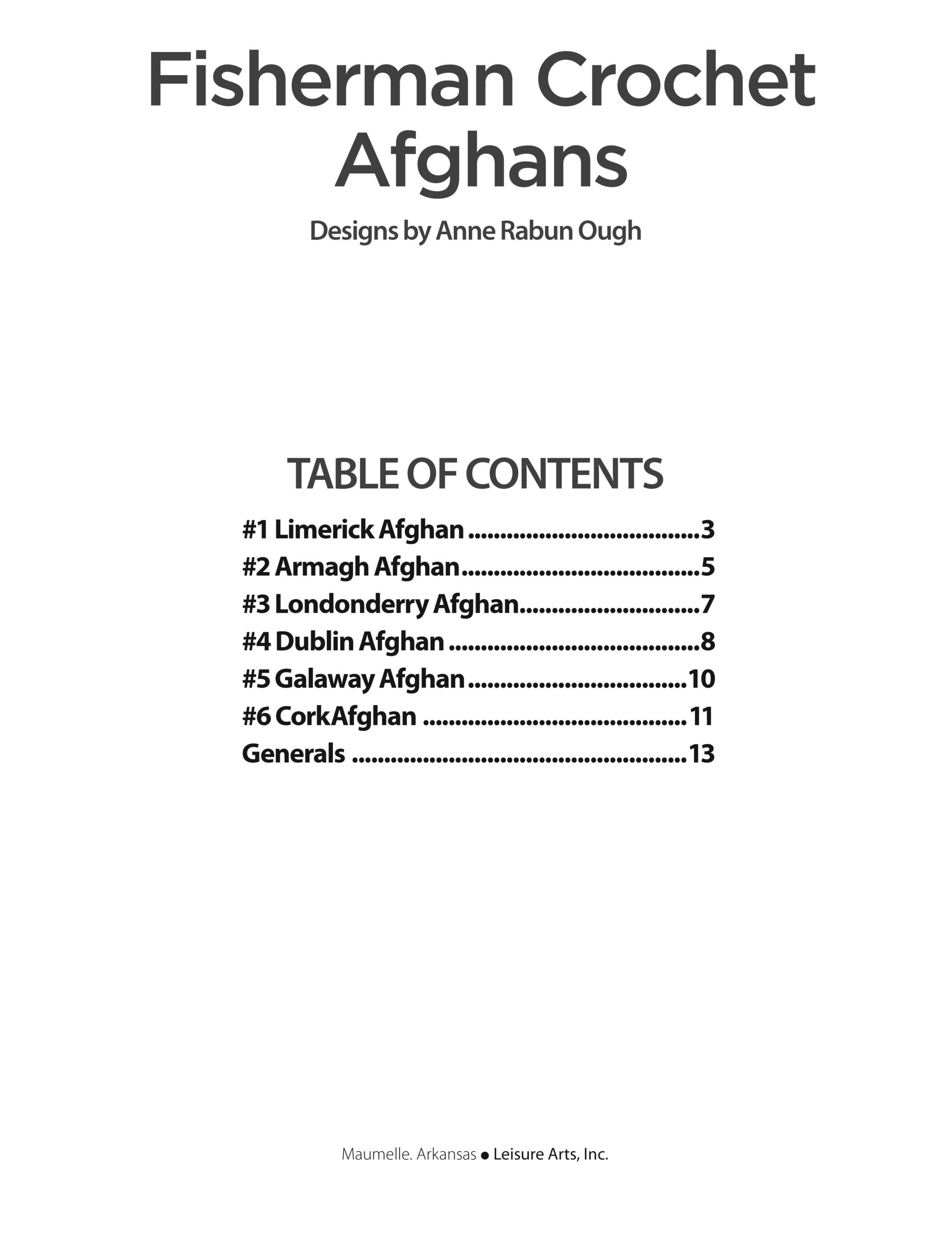 Crochet Fisherman Crochet Afghans- Lattice work, fringe and textured pattern stitches make these fisherman afghans delightful additions to your cozy décor. Projects call for size 4 medium weight yarn and US size I-9, 5.5mm and J-10, 6mm crochet hooks. Though some crocheters may need a larger hook size to accommodate the bulkier textures. Includes row-by-row instructions for each design, as well as stitch guides and illustrated diagrams. Finished afghans measure approximately 45″x 65″. 16 pages in a softcover.