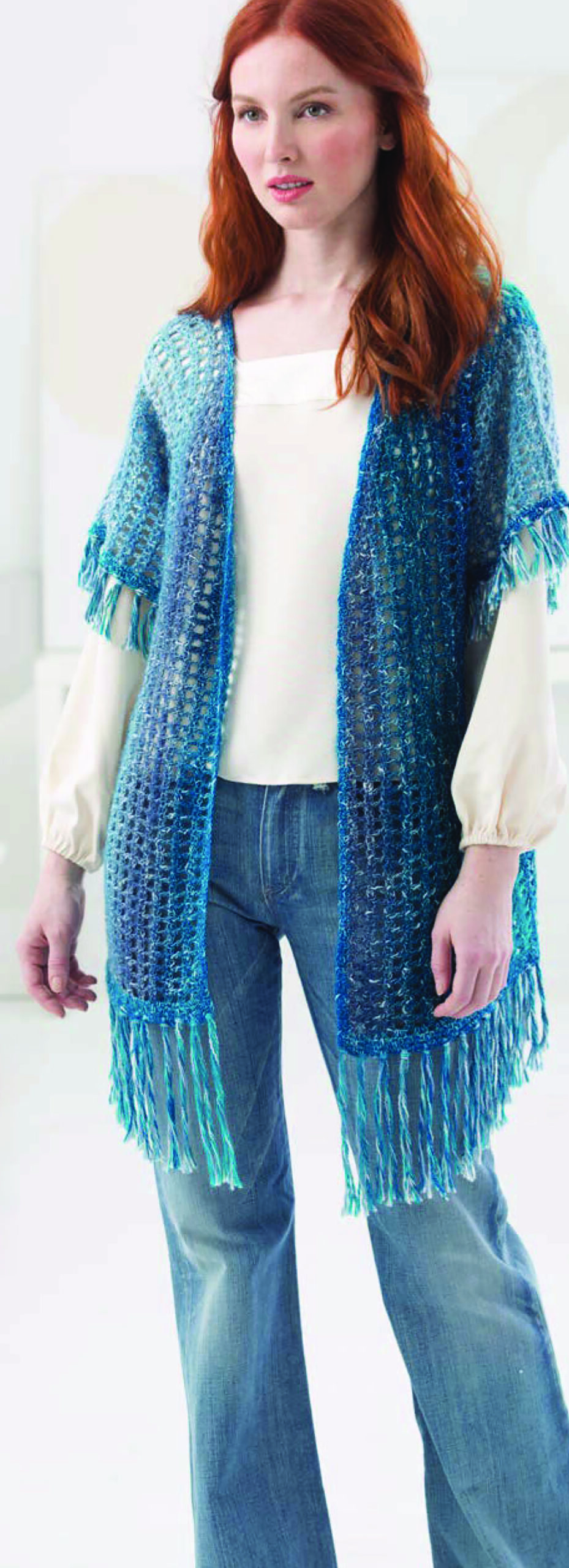 Shawls And Vests- Crochet seven bohemian chic vests, tunics and shawls using Lion Brand Shawl in a Ball, size 4 medium weight yarn. Use size F, G, H, I and J crochet hooks. Designs include kimono, tunic, rectangular shawl, poncho, ruana, circle shawlette and triangular shawl. Garments are sized small to 3X. 48 pages in a softcover.