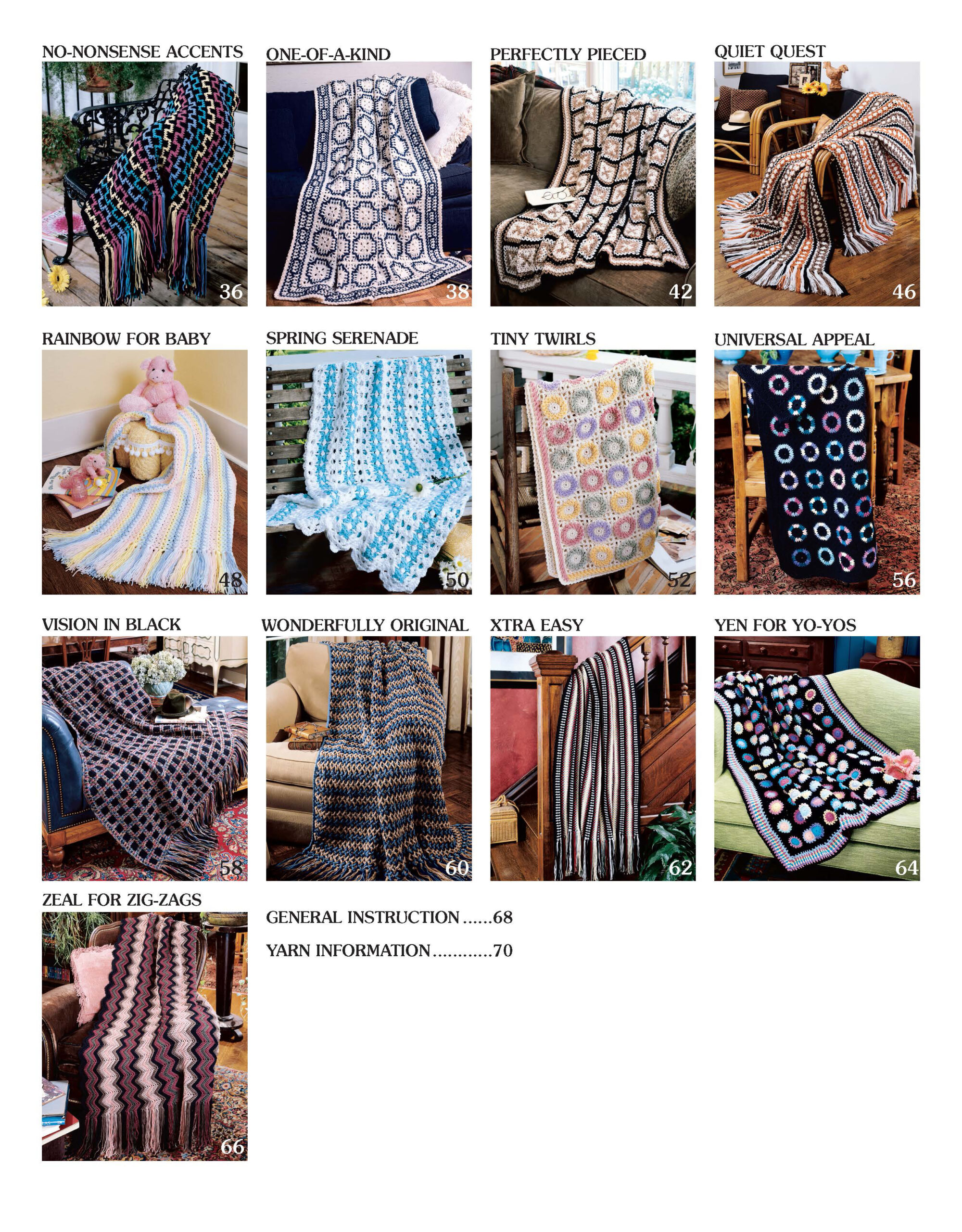 Afghans By The Alphabet- This collection of twenty-six afghans to crochet by Anne Halliday provides one for each letter of the alphabet. Take a jazzy journey, relax in the lap of luxury, or gift your favorite little one the clown carnival and baby’s best blankie. Features styles, textures, and motifs to appeal to anyone on your gift list while providing a large assortment of techniques and patterns. 72 pages in a softcover.