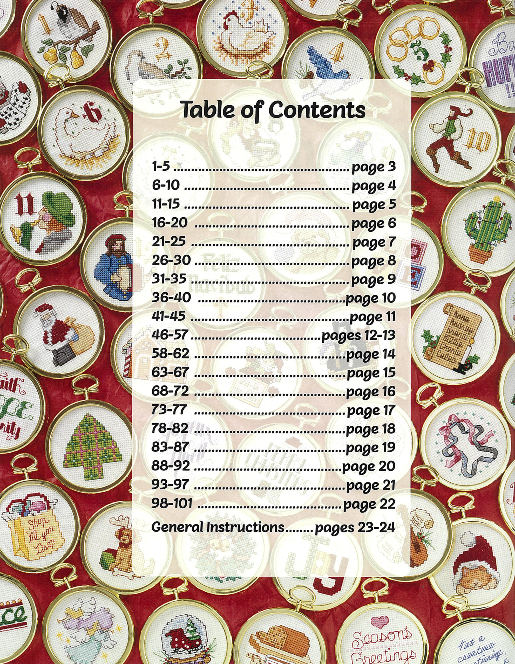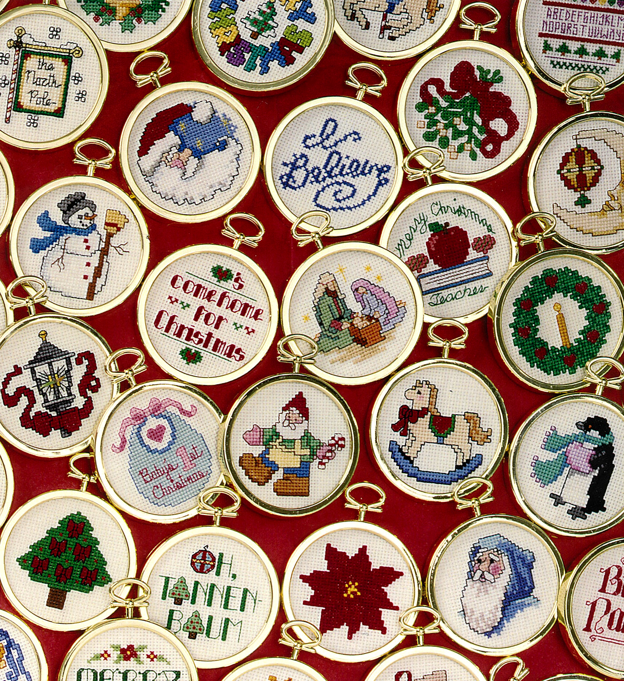 101 Christmas Minis 2- These traditional holiday designs are wonderful for finishing as ornaments or using to embellish other decorations and gifts. Designs feature Nativity scenes, Santas, snowmen, florals, toys, elves, stars, candles, greetings, pets, music, and more. Full-color charts with DMC color recommendations, cross stitch diagrams and instructions are included. Finished design sizes vary but all fit inside a 2 1/2″ square frame or round ornament when stitched on 18 count Aida. Intermediate experience level. 24 pages in a softcover.