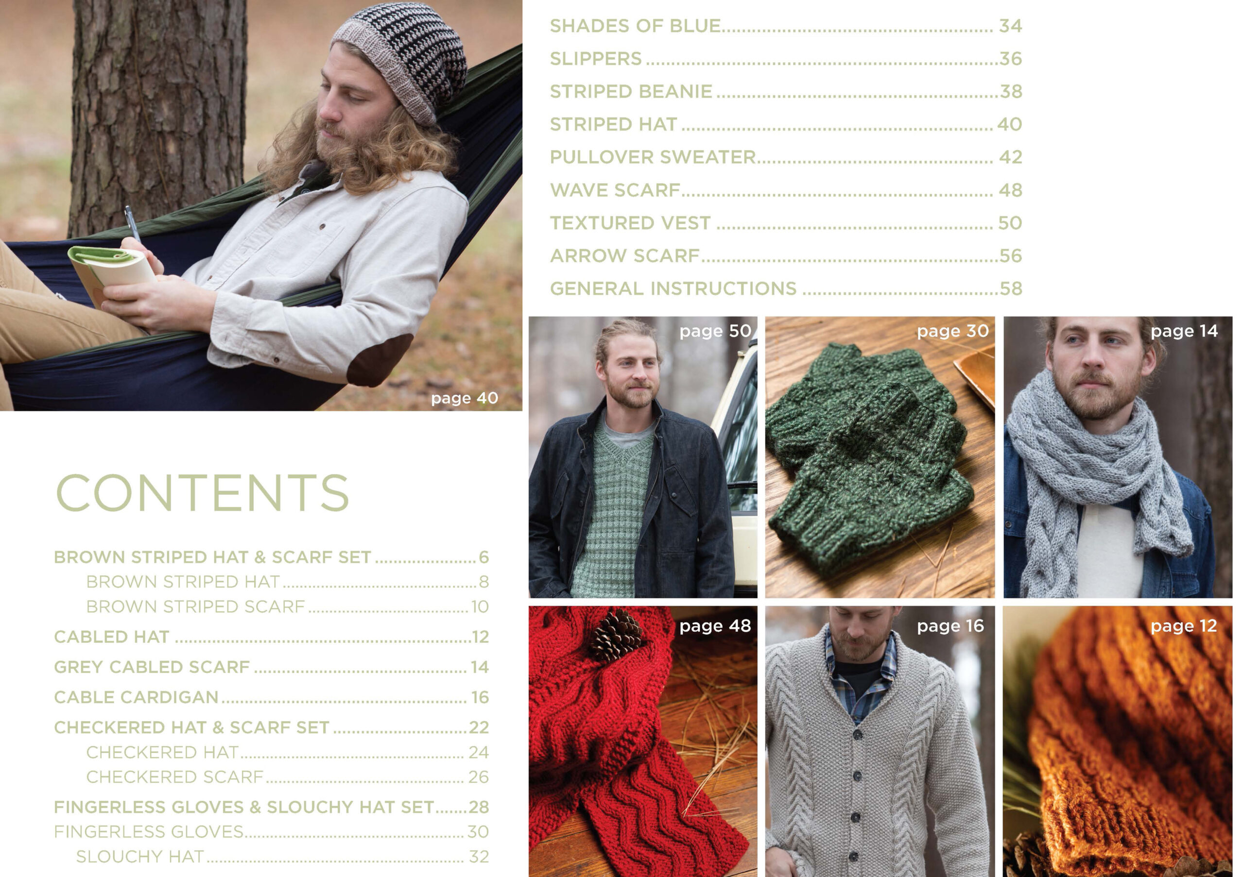 Everyday Men’s Knits- Give the gift of hand knit warmth. Make these 17 handsome knits for the favorite men in your life. All projects are rated for easy to intermediate skill level and come together quickly using medium-weight yarn. Each design has user friendly step-by-step instructions with pictures and supply lists. Projects include: hats, scarves, sweaters, vests, and gloves. 64 pages, sofcover.