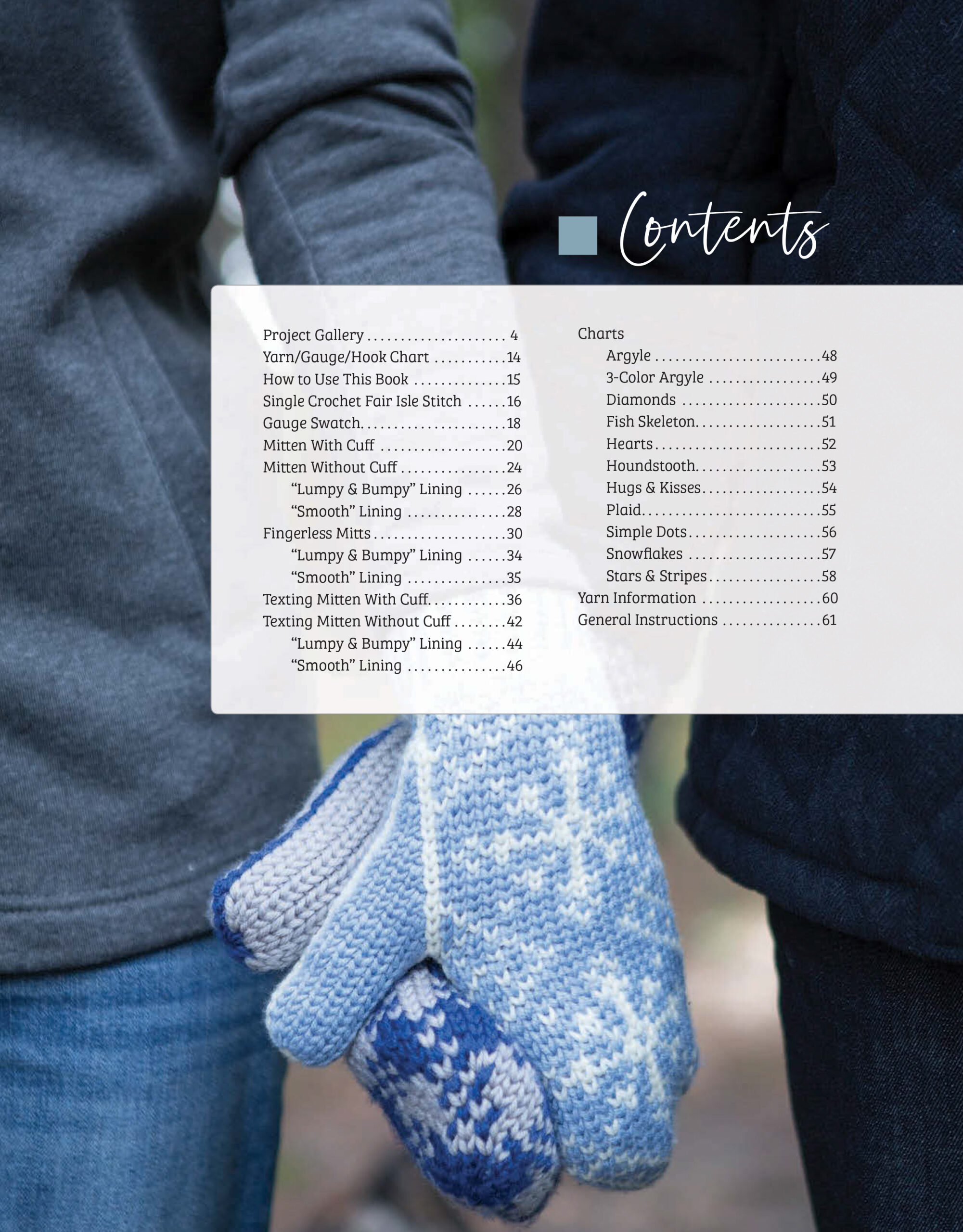 Fair Isle Mittens Crochet- Create the look of professional store bought knits, with crochet. Learn this wonderful variation of the single crochet stitch that perfectly mimics a knit stitch. Follow along to create beautiful custom mittens. No matter your skill level or hand size, there is a design and pattern for you. Choose from 11 different designs and 5 mitten styles to find the perfect cozy crochet mitten for you or a loved one. Use your own choice of yarns in super fine through medium gauges. 64 pages in a softcover.