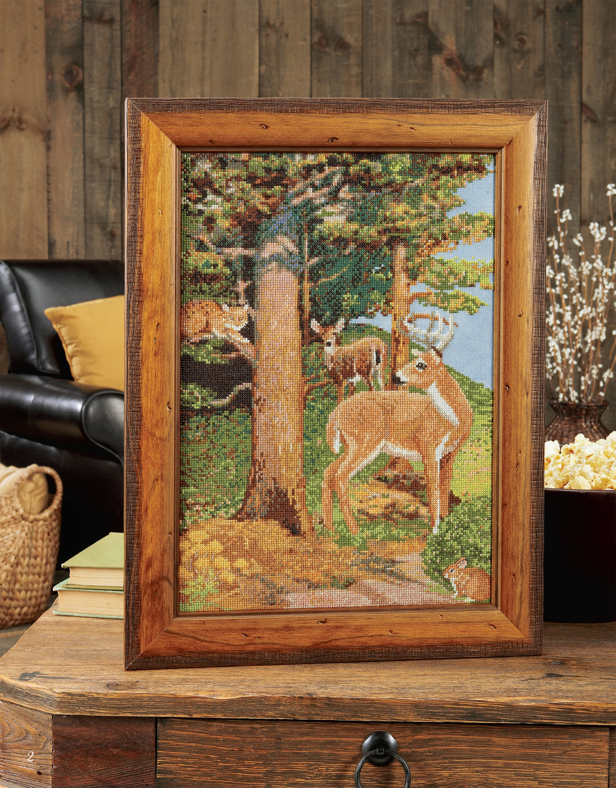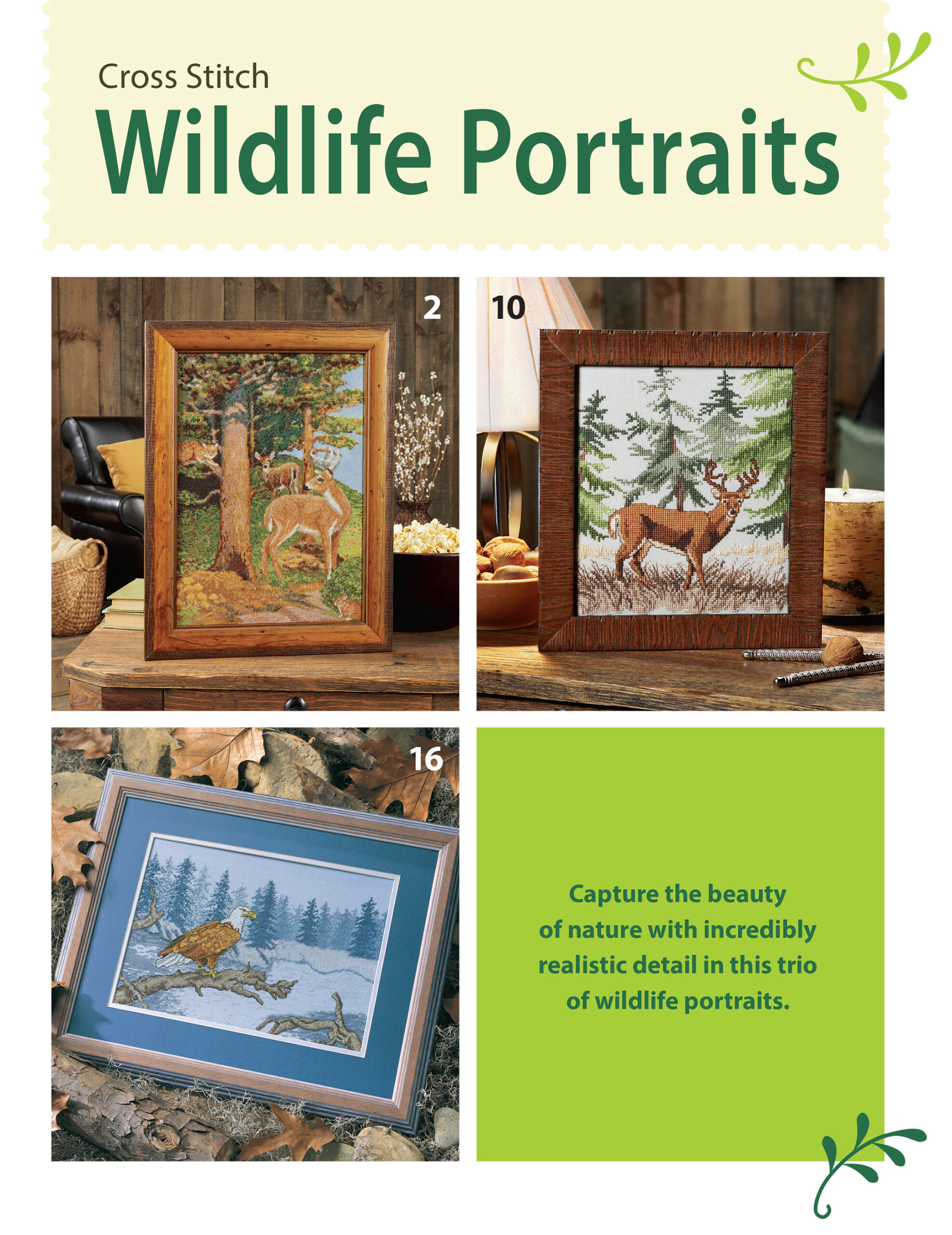 Herrschners Wildlife Portraits Cross Stitch- Enjoy the great outdoors with these majestic designs. The intricate pieces will look great in a den, study, living room, or cabin. Choose from 2 counted cross stitch deer designs and a soaring eagle for a woodsy addition to your home. Step-by-step instructions and general information included. Stitch counts measure between 100w x 119h and 140w x 196h. 24 pages, softcover.
