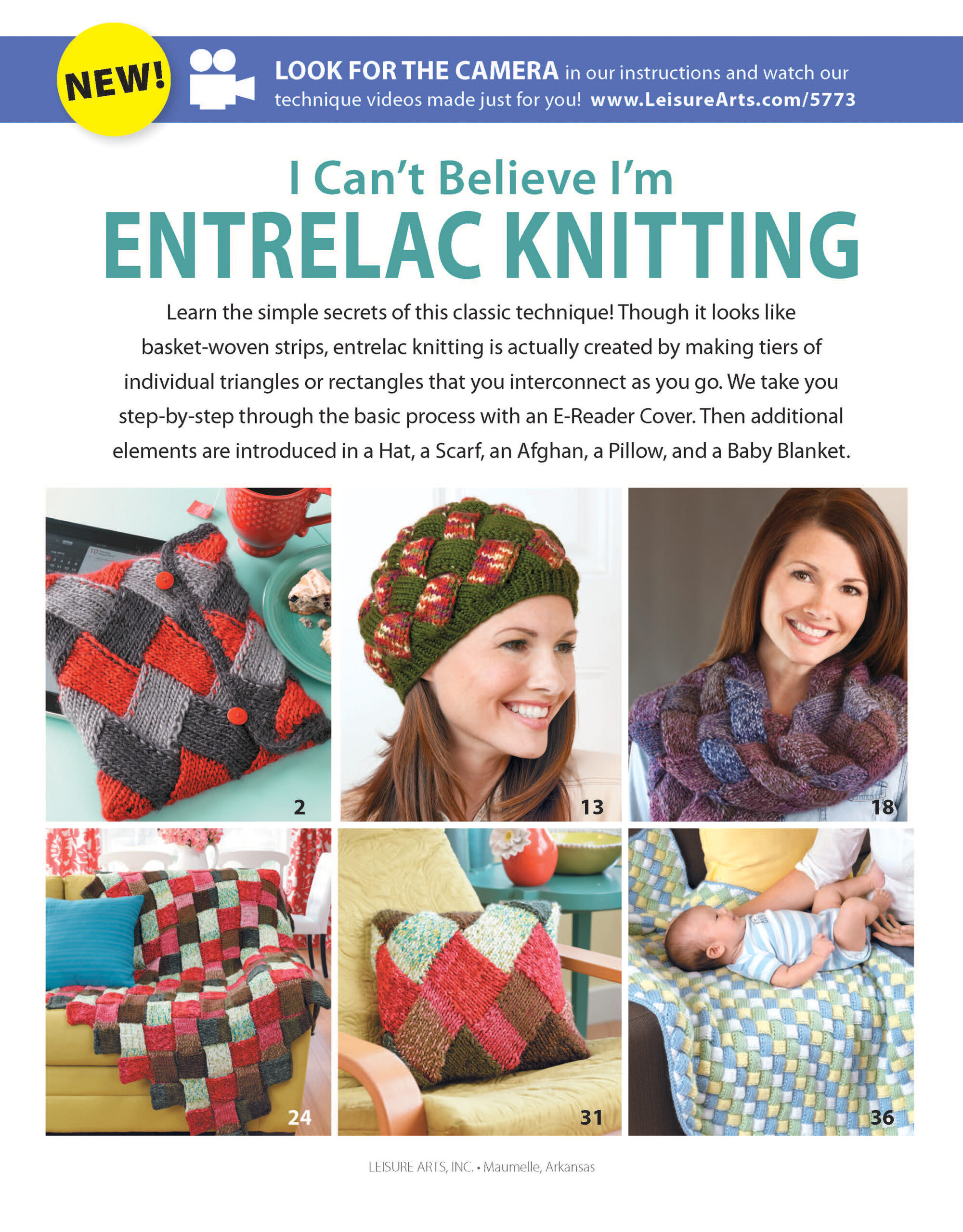 I Can’t Believe I’m Entrelac Knitting- Get all the basics for knitting this intriguing basketweave look. Work your project flat or in a round, one block at a time. Along with easy projects and clear, step-by-step instructions, you’ll have access to online video support and tutorials to learn even more secrets of this classic technique. Designs include: e-reader cover, afghan, hat, scarf, pillow, and baby blanket. Projects call for size 4 worsted and 5 bulky weight yarns and knitting needles in US sizes 7 through 10. Some projects include multiple sizing options. Beginner to intermediate skill level. 48 pages, softcover.