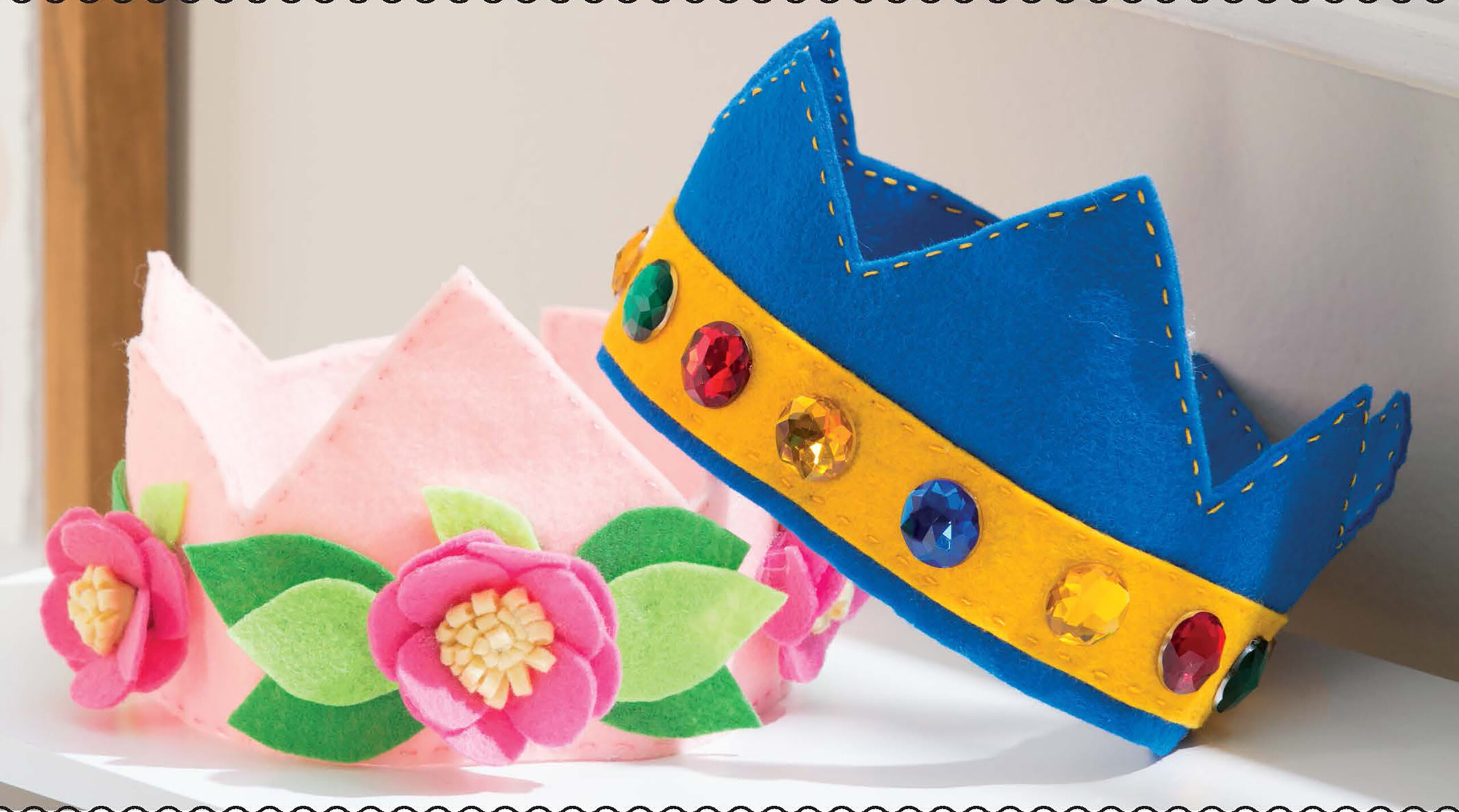 Kids’ Felt Cuties- From royal crowns to animal masks, the fun designs will keep kids entertained. Patterns and step-by-step instructions make them all easy to craft with just a little bit of cutting, gluing and simple embroidery. Projects include crowns, headband, wand, taco plushie, piggy coin bank, vegetable garden box, animal masks and magnetic fishing game. 32 pages in a softcover.