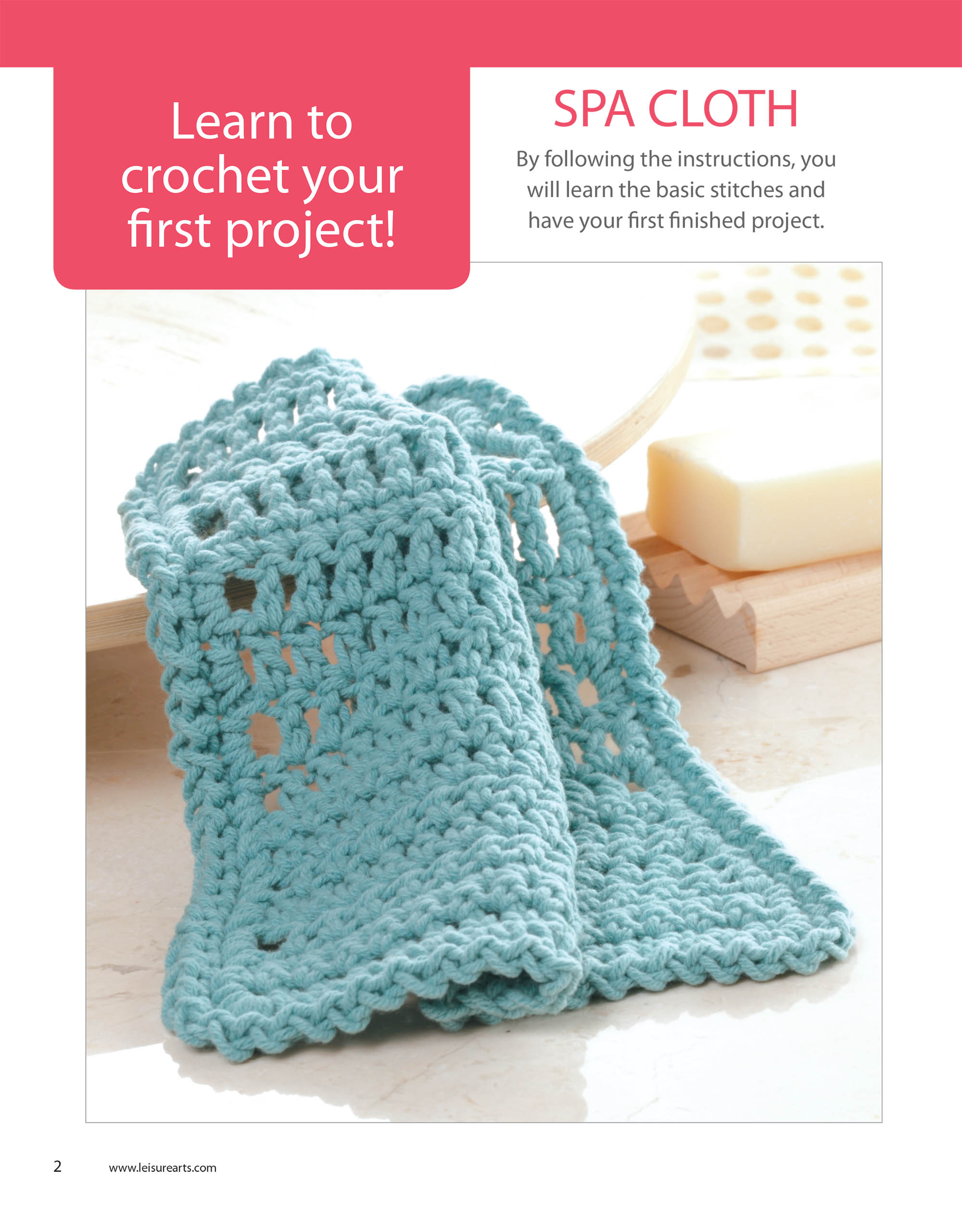 Learn To Crochet Now- Conquer the basics of crochet with a simple sampler spa cloth. Then discover how easy it is to go on to create 3 more beginner-friendly projects. With step-by-step explanations covering how to hold your hook, identifying stitches, how to read patterns, and finishing techniques. Includes both right and left handed instructions for chain, single, double, half double and treble crochet. Uses size 4 worsted weight yarn and hook sizes H, I and K. 36 pages in a softcover.