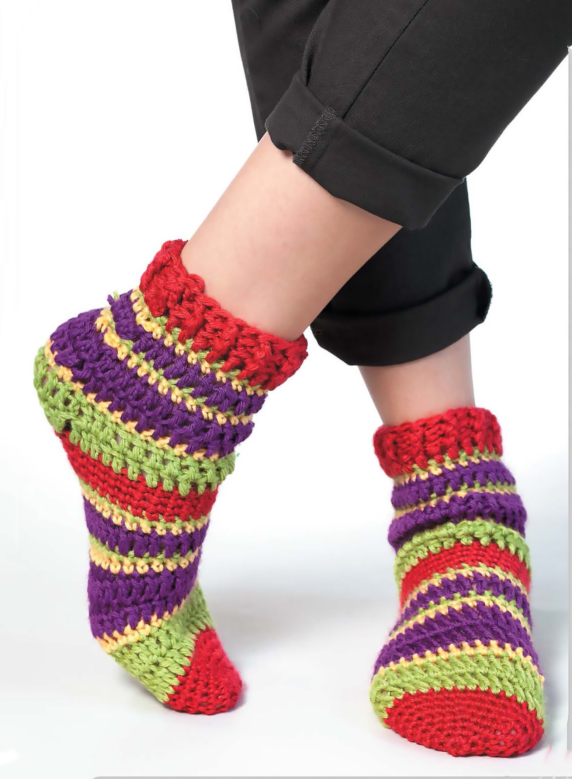 Leisure Arts Crocheting In Circles eBook- 10 fun accessories featuring crocheted circles or crochet-in-the-round. You can accomplish marvelous designs by crocheting in circles. Learn to make bags, hats, an e-reader cover and more, while strengthening your skills in circular crochet. Designs include: encircled wrap, bluebonnet beret, running in circles slippers, retro rocket market bag, orange pop purse and more. Projects call for size 4 worsted weight yarn and a wide range of standard US size crochet hooks. Includes round-by-round and row-by-row instructions for each design, plus full-color photo, stitch diagrams and some specialty finishing instructions, like felting. Slipper designs include multiple sizing options. Easy skill level. 38 pages, PDF download.