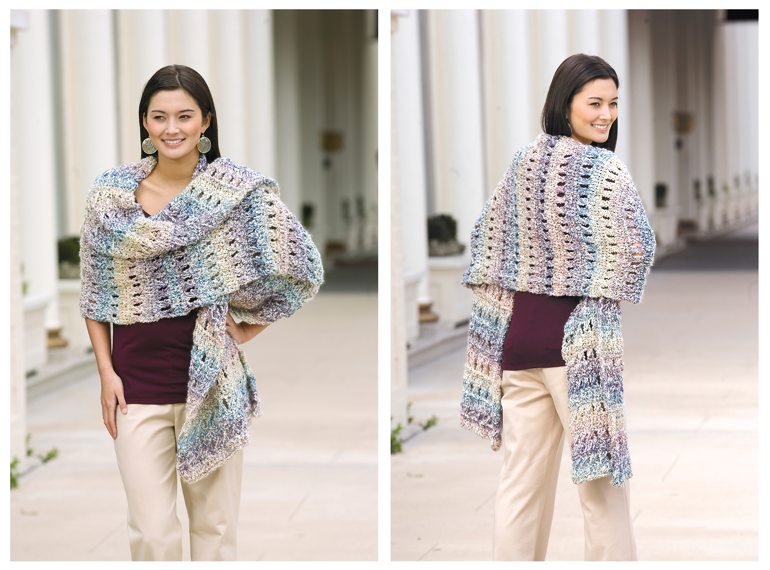 Leisure Arts eBook Home Spun Shawls- Discover the art of elegant layering with Shawls and Wraps, a digital crochet collection featuring six beautifully designed patterns that combine style, versatility, and ease. This carefully crafted book guides you through the process of creating a variety of shawls and wraps, each with its own unique stitch pattern, shape, and drape. Skill levels intermediate and easy. 35 page, PDF Digital Download.