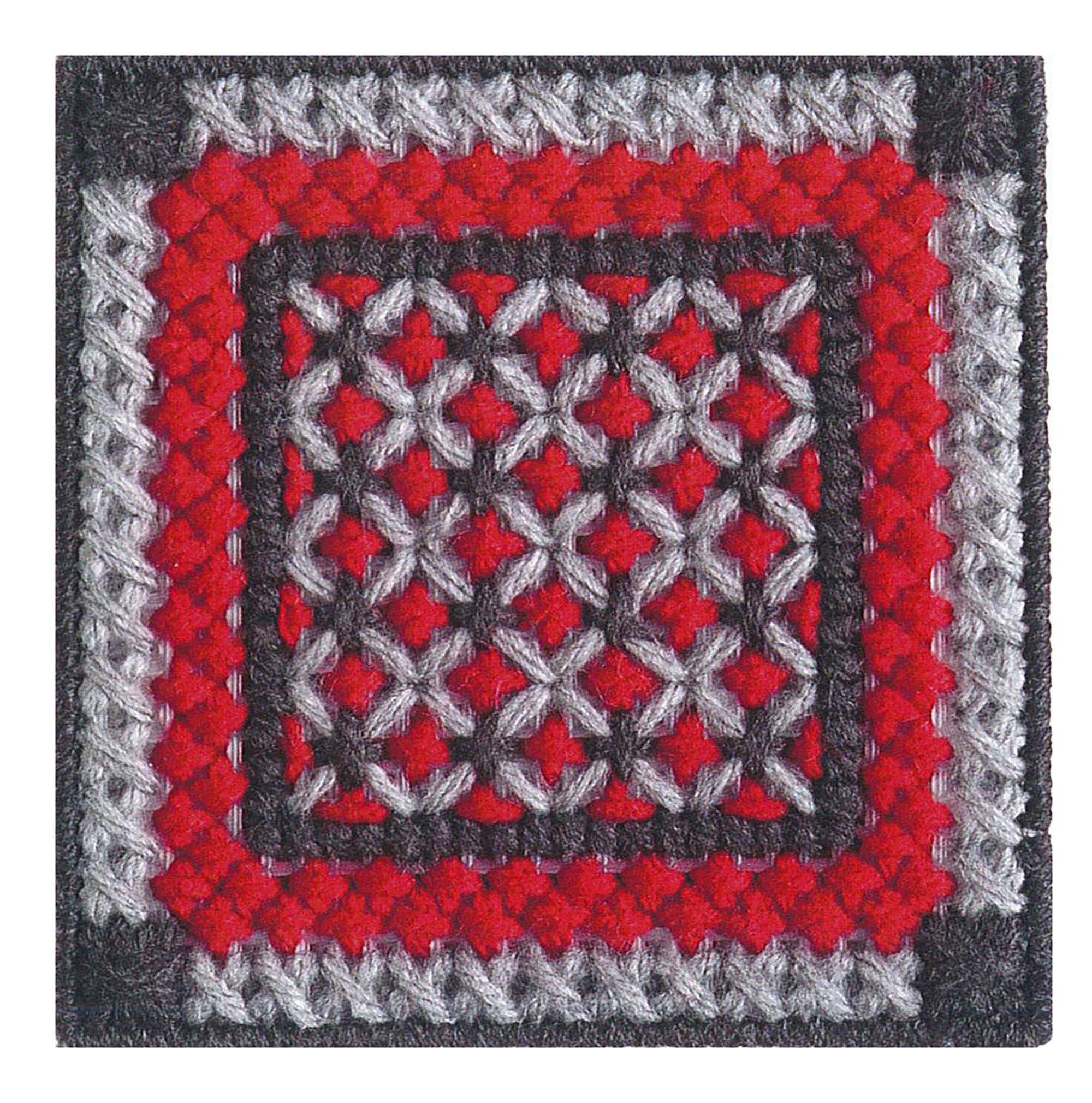Leisure Arts Teach Yourself Plastic Canvas Book- Beginner’s guide to needlepoint and plastic canvas. Learn all about stitching on plastic canvas with 18 informative pages. Step-by-step instructions teach the basics, from selecting canvas mesh size, yarn weight, and needles to cutting canvas shapes and learning a variety of stitches. The final lessons take you through creating a coaster set with a storage box; includes eight different coaster patterns. The 30 stitches include mosaic, scotch, bargello, Byzantine, cashmere, double brick, Milanese, Parisian, Rhodes variation, Smyrna cross, triangle, and more. Materials needed for coaster projects include: 7 mesh plastic canvas, US size 4 worsted weight yarn and a size #16 tapestry needle. Finished coasters measure approximately 4 1/4″x 4 1/4″. 24 pages, softcover.