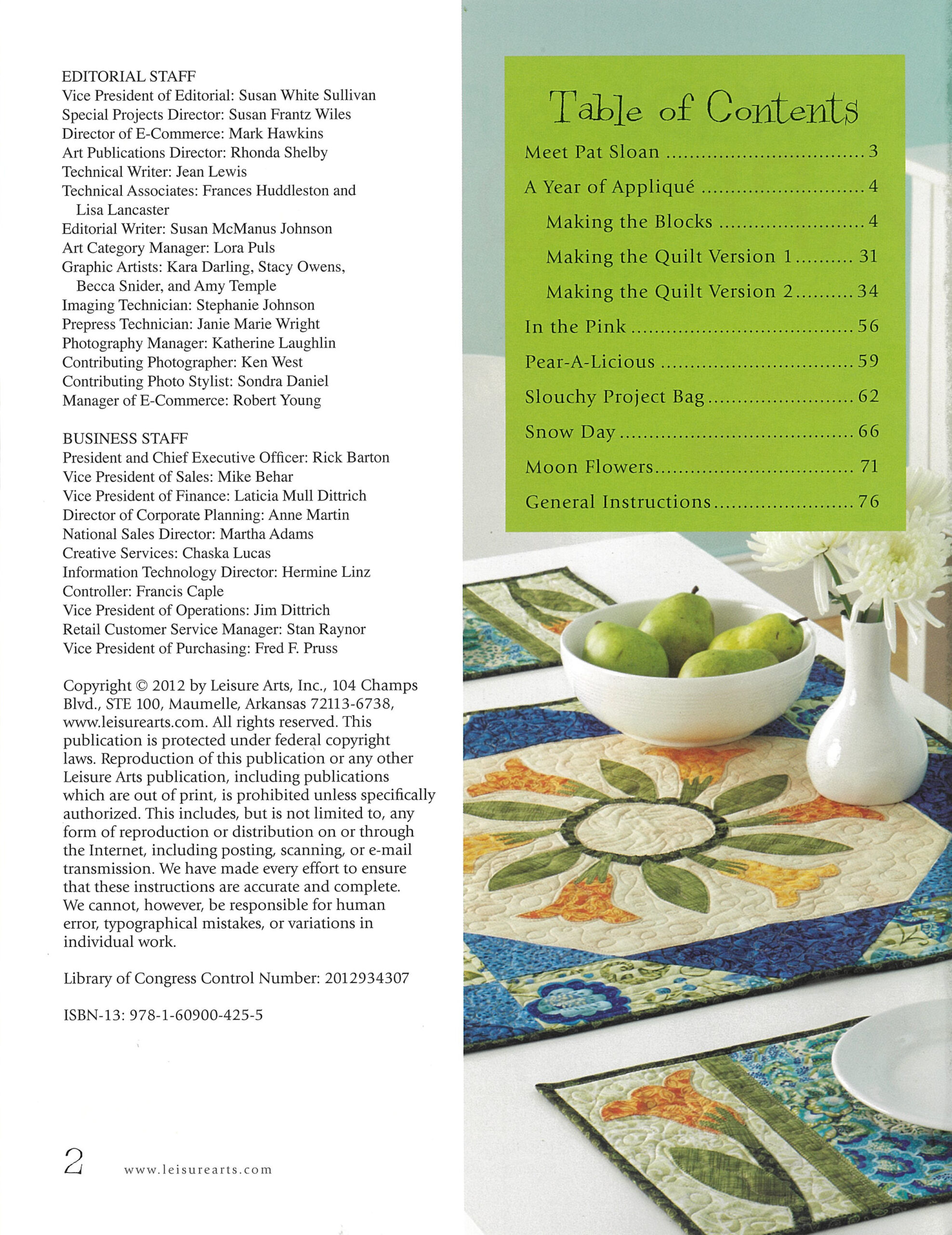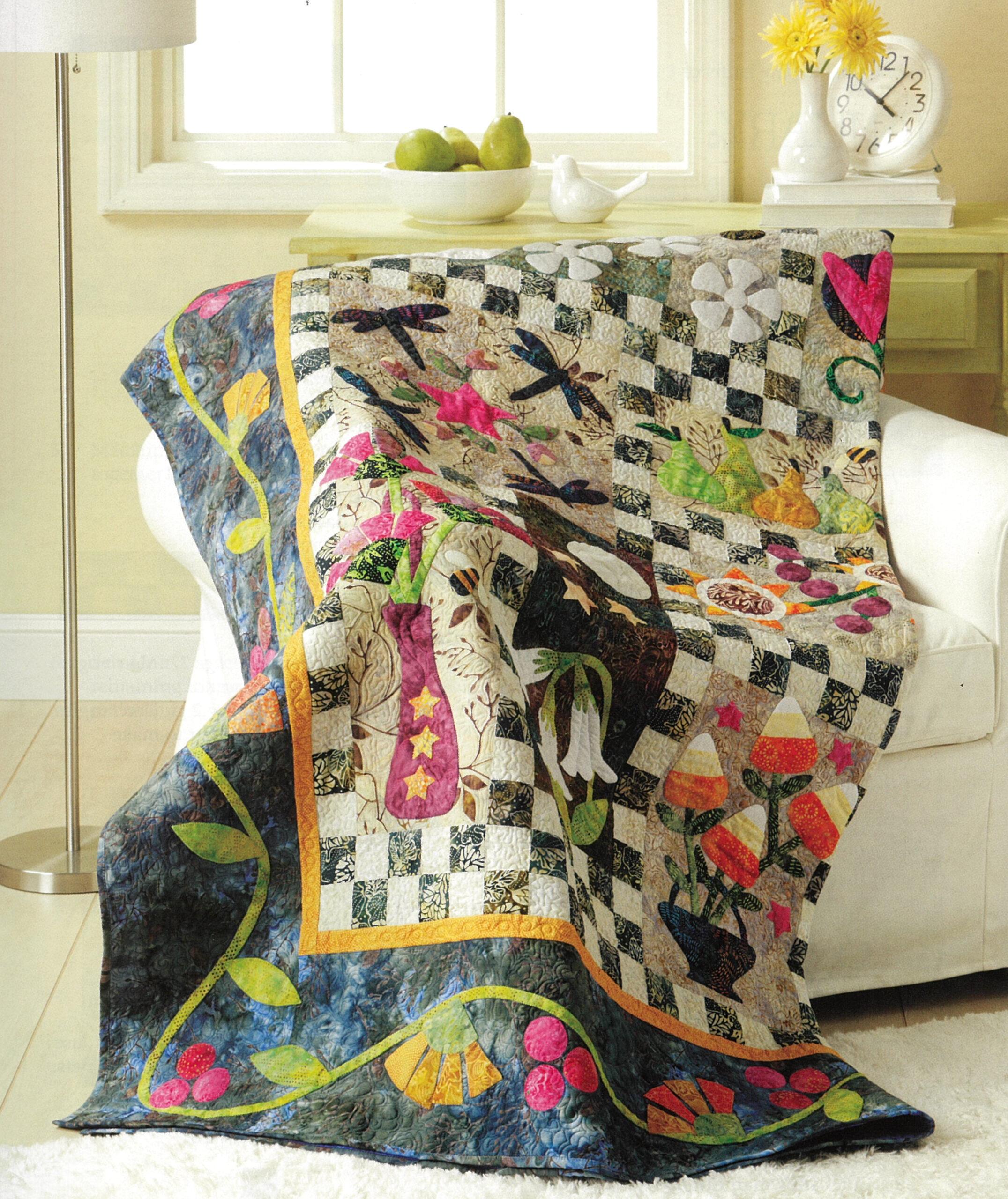 New Ideas for Applique- Inspired by the joy of decorating for the seasons, Pat Sloan has created a stunning block-of-the-month applique quilt and an assortment of fun projects showcasing some of the block designs. Version one of the 85″x 85″ quilt is made from vibrant batik fabrics for a bright and bold look. Version two uses more traditional colors and prints for a warm and toasty feel. Also includes other seasonal projects like a tabletop set, a project bag, a pillow, and a throw. Some of the blocks can even be finished as mini quilts. 88 pages, soft cover.
