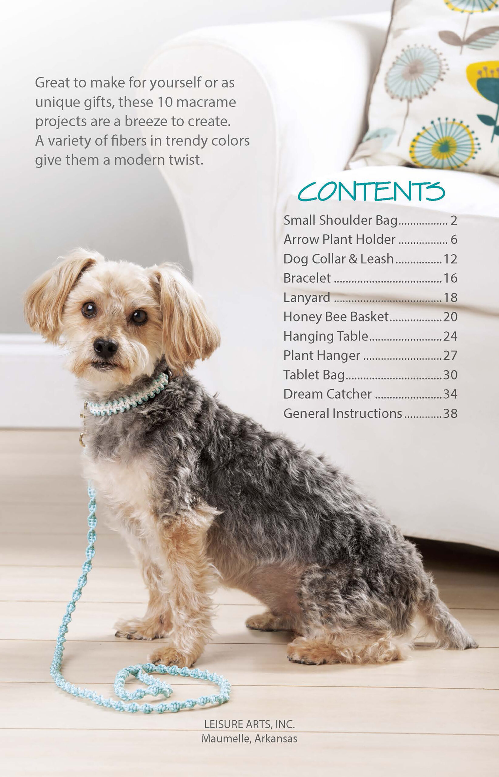 New Twist on Macrame- 10 great to make for yourself or as unique gifts. Use jute, paracord, braided macrame cord, and cords in trendy colors for a modern twist. Projects by Diana Sanders Cates include Small Shoulder Bag, Arrow Plant Holder, Dog Collar and Leash, Bracelet, Lanyard, Honey Bee Basket, Hanging Table, Plant Hanger, Tablet Bag, and Dream Catcher. General instructions for knots include Boot Lace Bar, Braid, Half Knot, Japanese Knot, Lark’s Head Knot, Overhand Knot, and more. 48 pages in a soft cover.