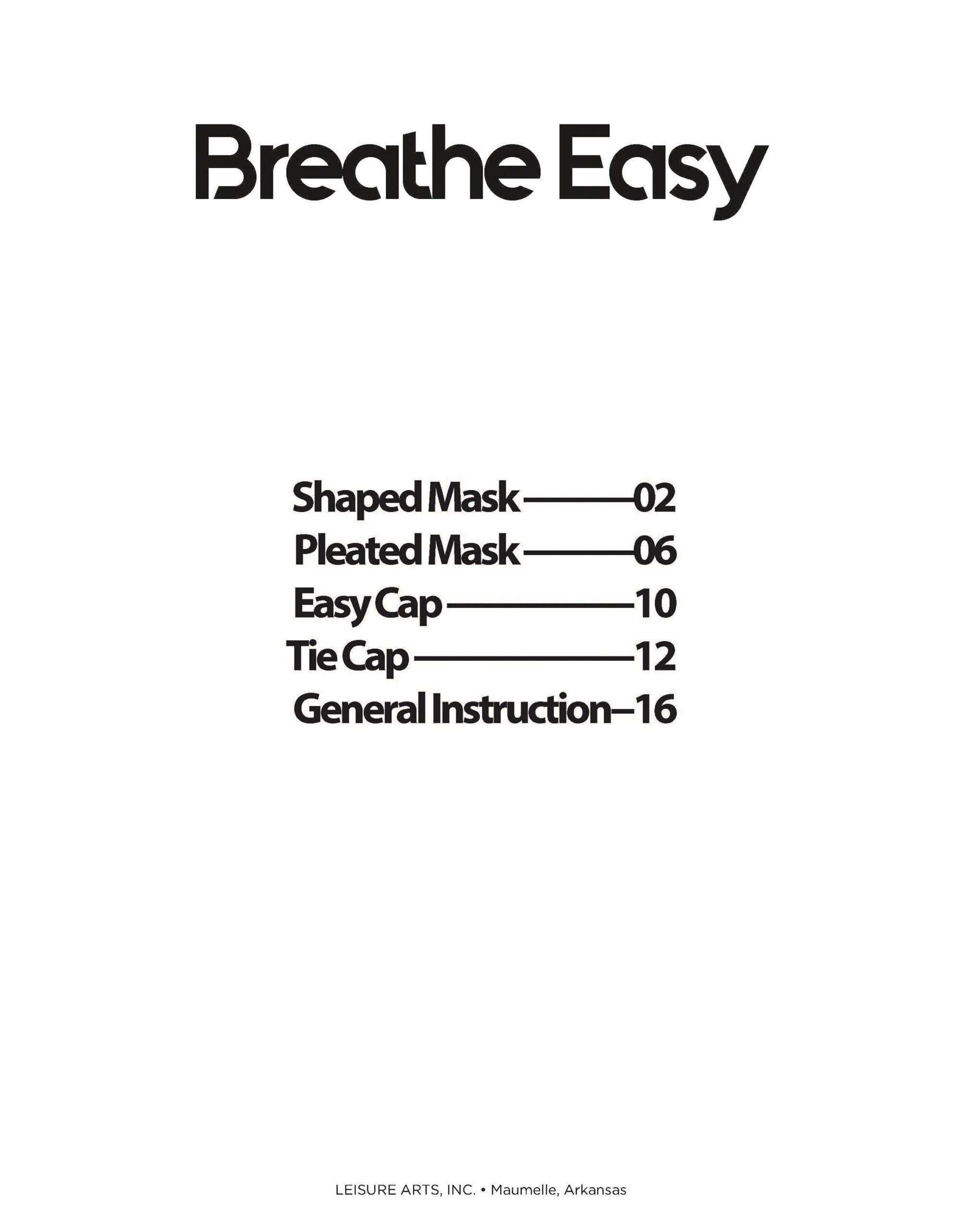 Quilting & Sewing Breathe Easy Special Edition- Quick, functional, and packed with love and cuteness, these masks are sure to bring both joy and peace of mind. Protect your friends, family, and hardworking medical providers. These quick and cute projects will bring you pride while they keep your people safe. Step-by-step assembly instructions, sewing tips, photographs, and patterns make it easy to provide a sense of security to your loved ones. Each mask pattern includes options for large adults, small adults, and children. Designs include: shaped mask, pleated mask, easy cap, tie cap and more. Beginner skill level. 24 pages, softcover.