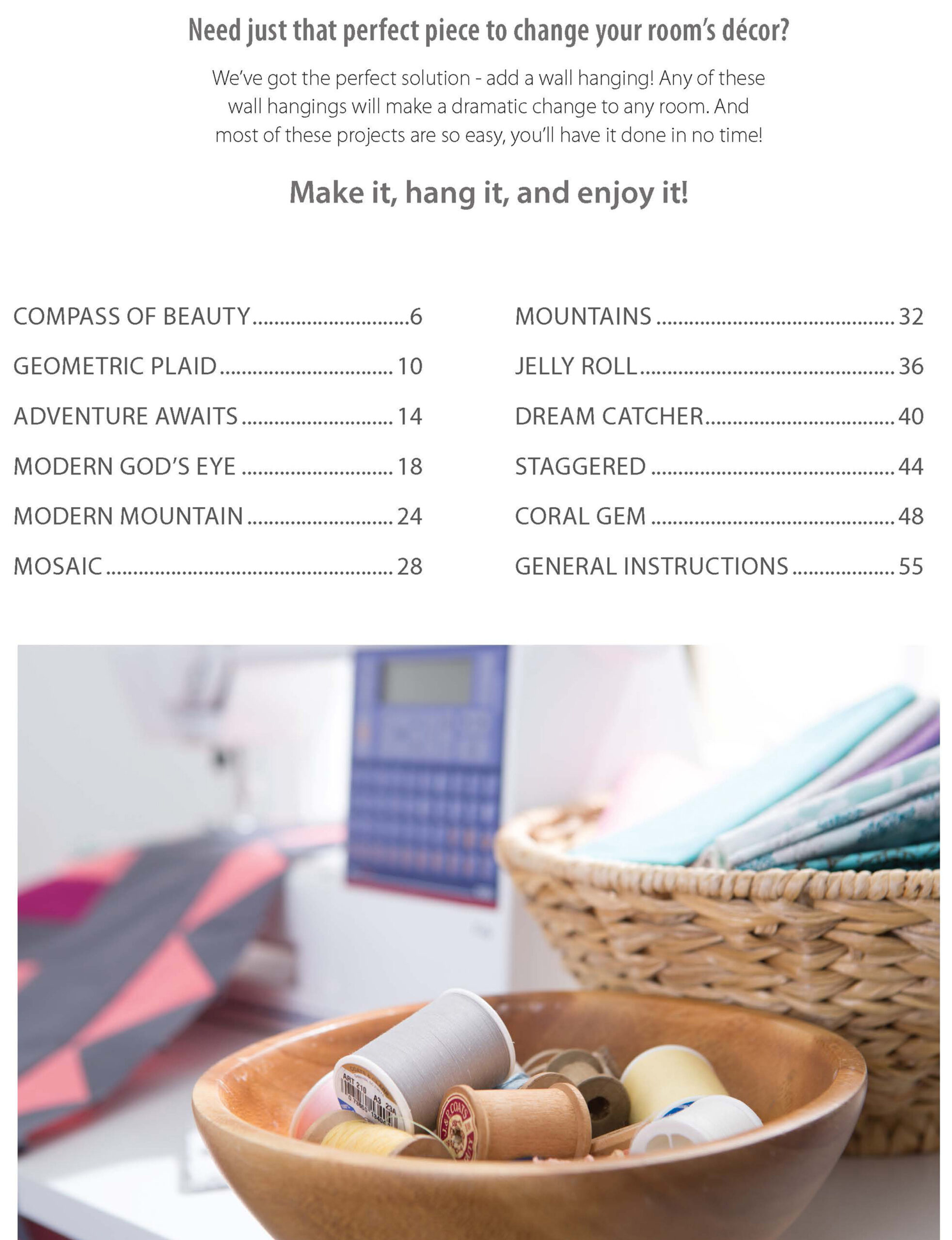 Quilted Wall Hangings- So many projects, so little wall space. Choose from these 11 unique quilted wall hanging tutorials and brighten up any room. Perfect for gifts or to keep for yourself. Follow along with these quick, easy, stylish designs to spruce up any empty wall. 64 pages in a softcover.