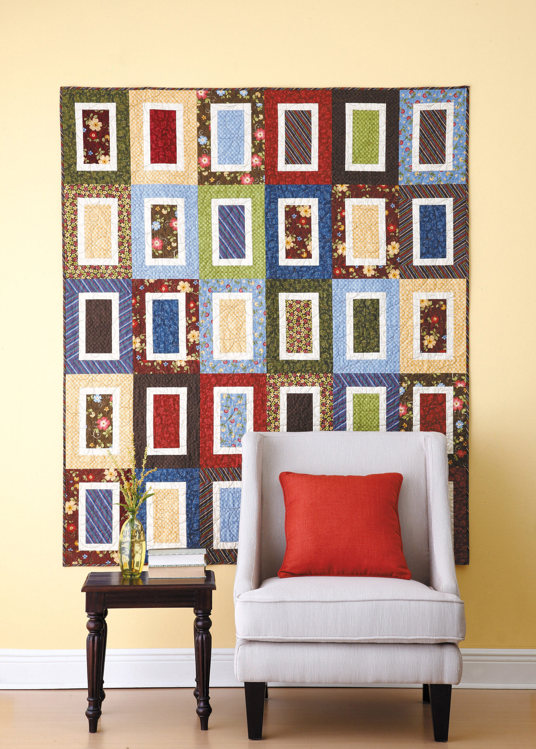 Quilts With Style- Depending on whether you choose tried-and-true traditional fabrics or brand new and bold, these quick quilts will capture any mood you wish. With block sizes ranging from 4″x 4″ to 16″x 16″, and even a 10″x 14″ rectangular block, it has never been easier to customize a quilt to your own size. These patterns show options for crib, lap, twin, full, queen, and king quilts, plus a table runner. Each pattern is shown in two colorways, and many show alternate designs achieved by simply rotating the base blocks. Charts are provided to change the size of your project, giving you more possibilities for your own exciting quilts. Six quilt designs: homebound, memory lane, riptide, sand dollars, simply rectangles, and snapshots. Some use fat quarters, jelly rolls, or layer cake pre-cut fabrics. 60 pages, in a softcover.