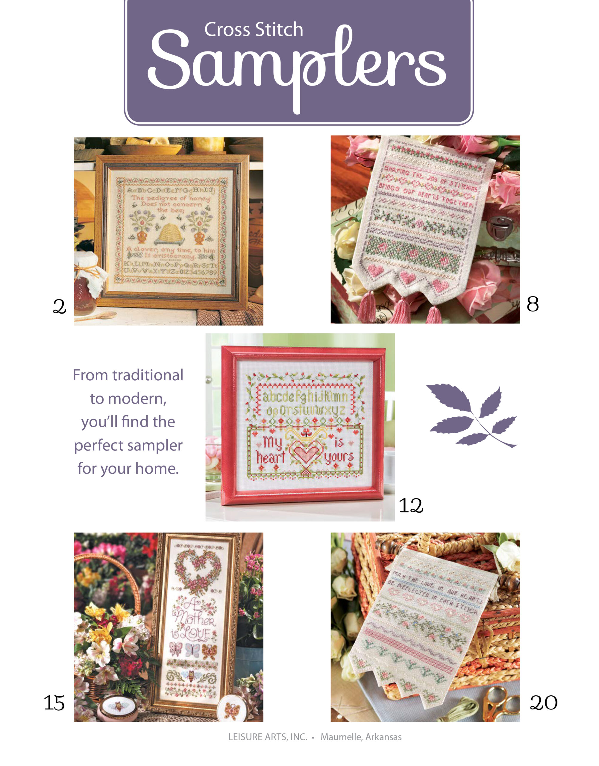 Samplers Cross Stitch- Enjoy this exquisite collection of cross stitch samplers. Whether you choose a sampler with a romantic flair, an ode to bees, or a loving tribute to a special mother, you’ll create a stunning addition to any room. Five designs from Herrschners. 24 pages, soft cover.