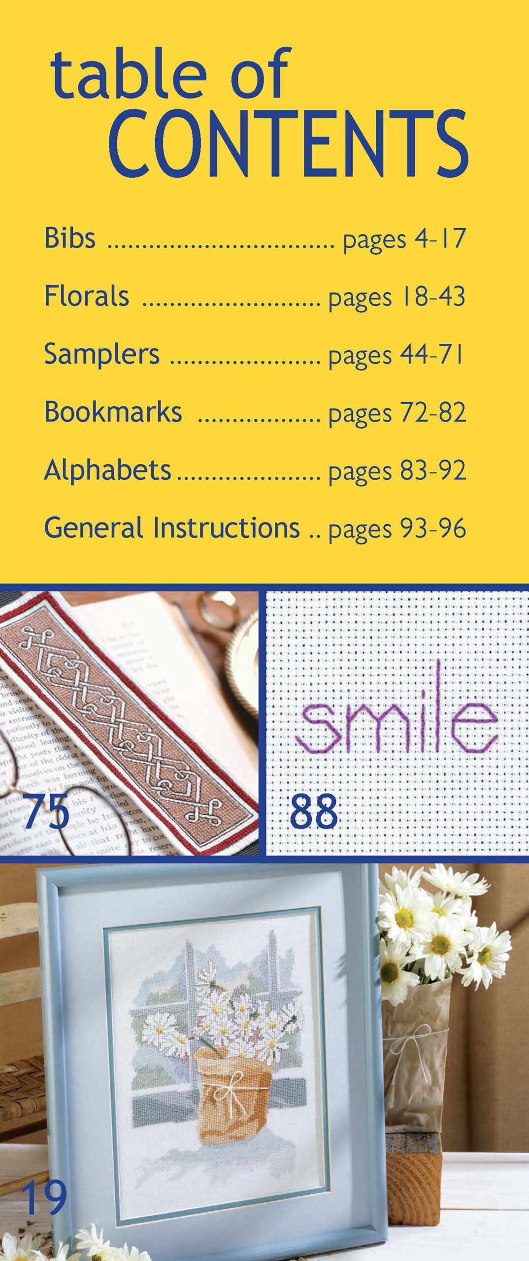 The Best Of Cross Stitch Basics- Create a world of beauty and whimsy with the simplest of stitches. 108 classic designs to refresh your home. You can embellish the most adorable bibs for a baby shower, or give your favorite reader the perfectmark. Includes lots of fun surprises to make for friends, including mini samplers, needle cases, and scented sachets. Plus, a huge variety of alphabets to personalize your work or fashion your own original sayings. Photos, color charts, and easy instructions will provide endless hours of creativity. Designs include: animals, inspirational captions, flowers, candy, toys, fish, gardens, house motifs, American flags and so much more. Beginner skill level. 99 pages, 96 pages in a softcover.