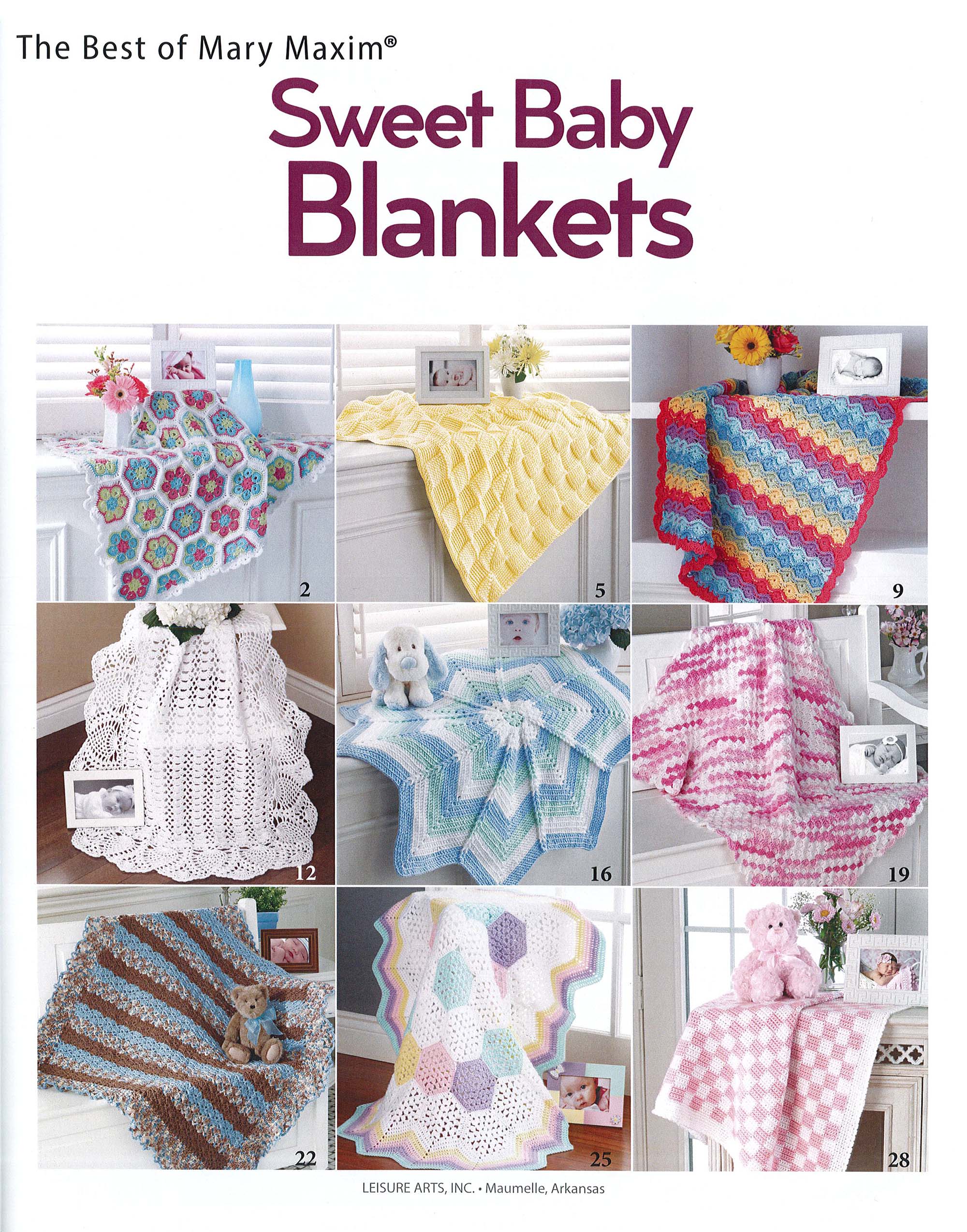 Sweet Baby Blankets Crochet- This presents nine cuddly and colorful crochet wraps in the Best of Mary Maxim collection. Designs include baby flowers afghan, cushy crocheted blanket, Bavarian baby blanket, baby pineapples blanket, dreamy baby blanket, candy stripes blanket, little boy blue blanket, hexagon blanket and checkered baby blanket. For easy to intermediate skill level. Projects are designed to be made with US size 2 sport or 3 worsted weight yarn. Recommended hooks range between US sizes G-6 and I-9; 4 to 5 1/2 millimeter hooks. Finished sizes measure between approximately 29″x 44″ and 32″x 44″. 32 pages, soft cover.