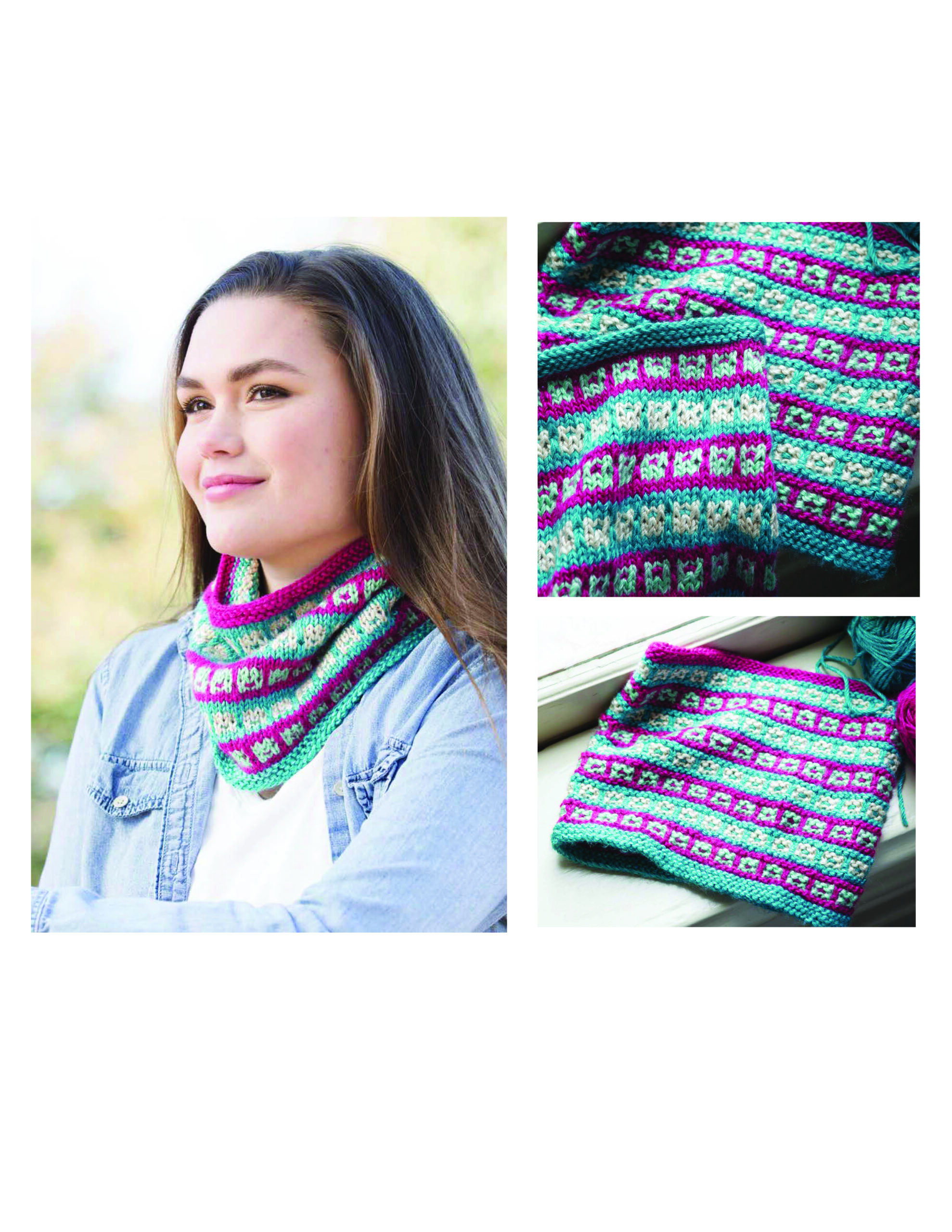 The Beginner’s Guide to Mosaic Knitting- Easy one color per row technique guide to mosaic knitting. This new technique enables you to create complex-looking fabrics using only one color per row. With detailed tips and instruction, you’ll be a master mosaic knitter in no time. Patterns include: headband, hat, cowl, pullover, sampler throw, baby blanket, sweater and more. Projects can be made with US size 3 light or 4 medium weight yarn and a wide range of straight and circular knitting needle sizes. Sweater pattern includes sizing options for women’s sizes small to 2X. All other wearable projects are one size fits most. Easy skill level, so you can knit projects up quickly. 64 pages in a soft cover.