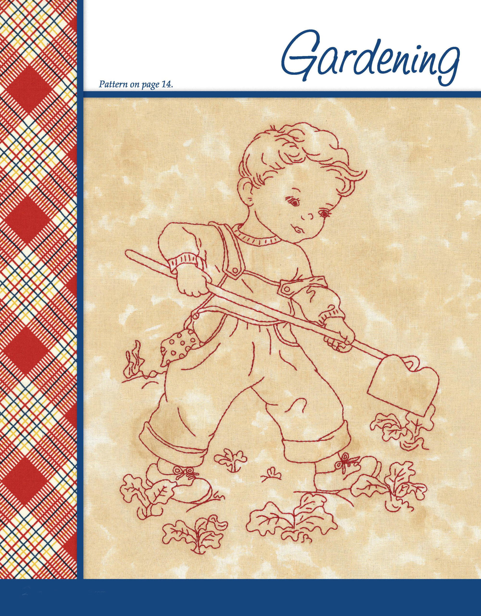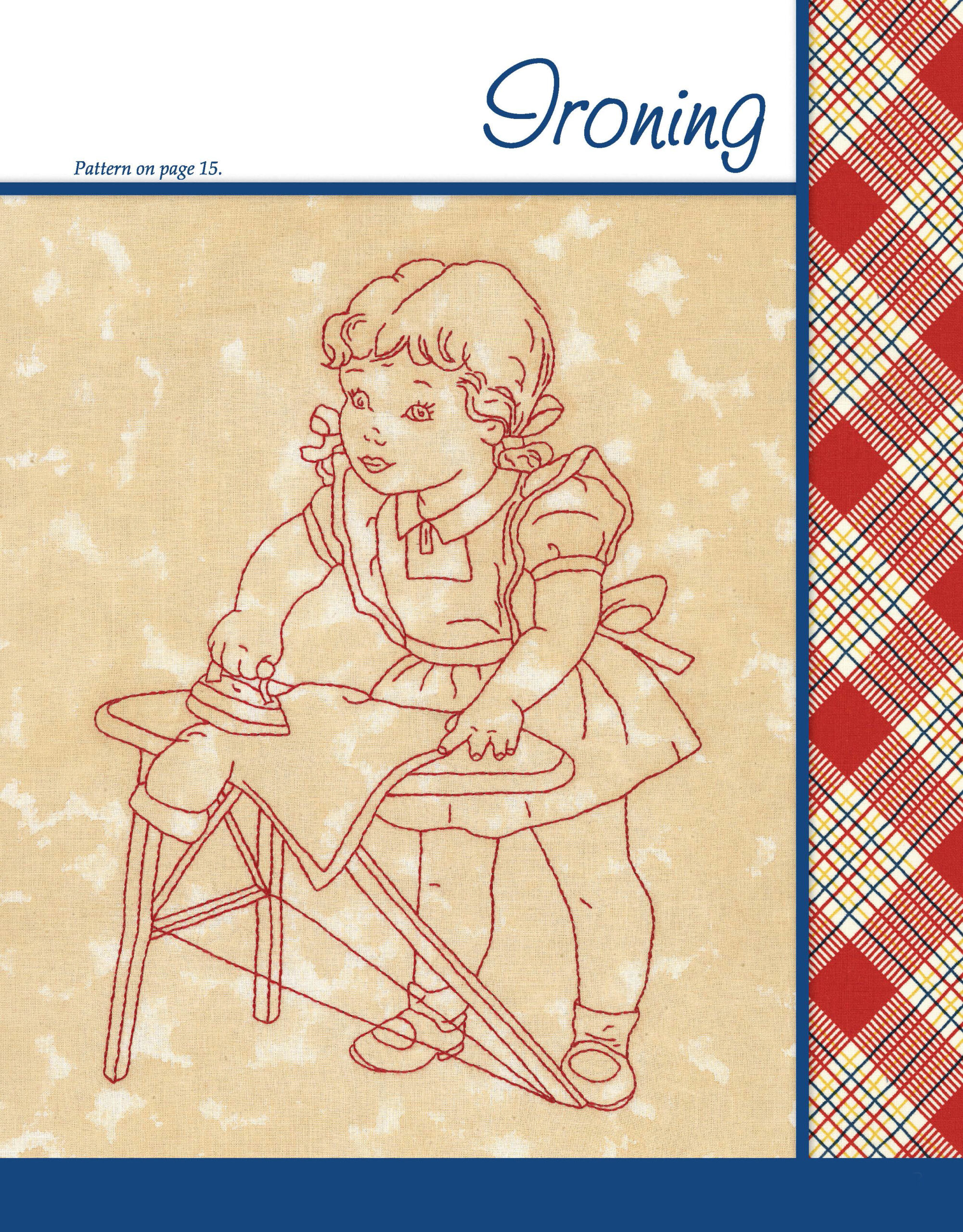 Work & Play Redwork Through the Day Embroidery- Here are 10 classic redwork designs, inspired by those darling children’s illustrations from the 1940’s and 50’s. Designs include: gardening, ironing, sewing, wash a dish, along came a spider, fishing, jumping rope, driving a pedal car on the sidewalk, rocking baby, and roller skating. Each fun design uses one or two easy embroidery stitches. The complete instructions show you how to enlarge or reduce the designs, stitch the designs on cotton fabric, then tea or coffee dye the completed piece for an authentic folk-art look. Please note that the designs in this are NOT iron-on patterns and must be transferred to your fabric using a light table or sunny window with a pencil or water-soluble pen. 24 pages, softcover.
