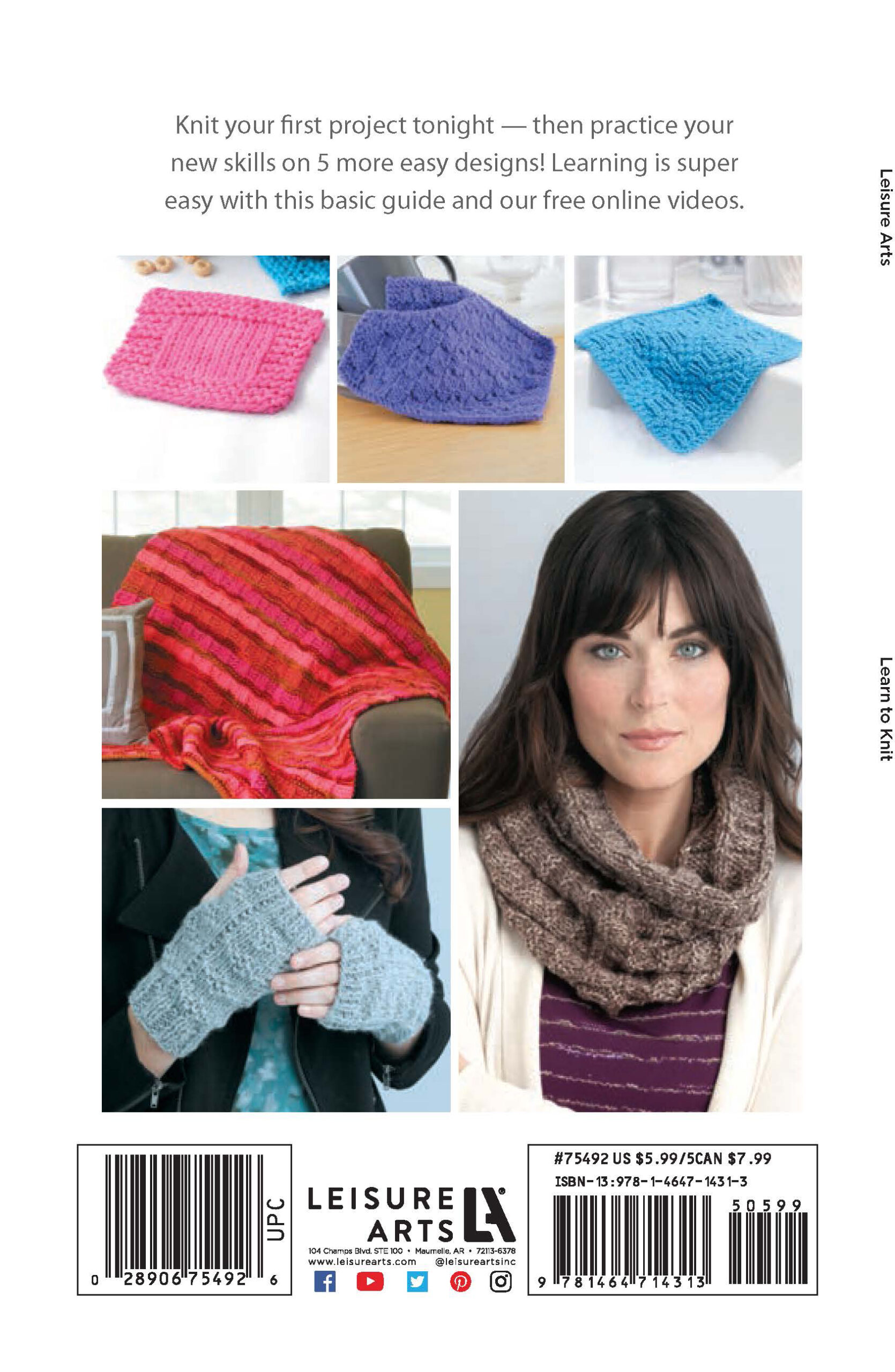 Learn To Knit- A classic skill with a modern feel, knitting is easy to learn. Get started on the basics while making a simple coaster. Follow the clear instructions and diagrams. Practice with five more projects which include a spa cloth, dishcloth, hand mitts, reversible cowl and throw. Throw uses size 6 super bulky yarn and size 10 knitting needles. All other projects use size 4 medium weight yarn and size 6 or 8 knitting needles. 48 pages in a softcover.