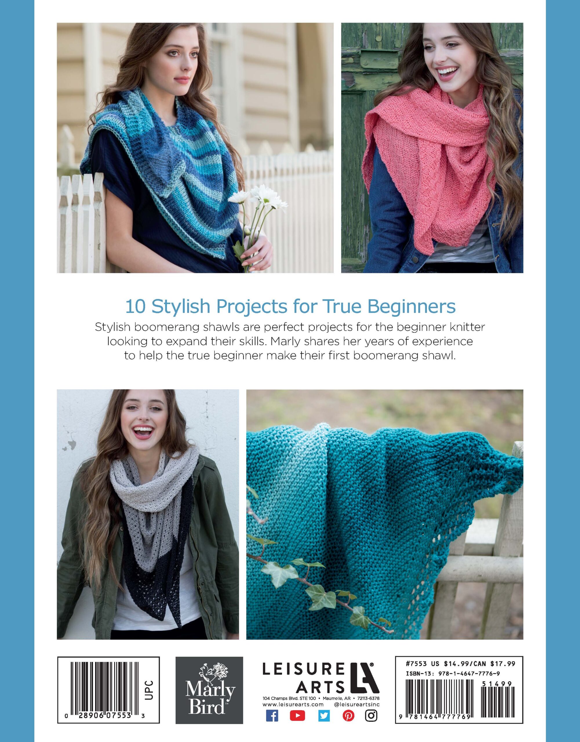 Boomerang Shawls Knit- Stylish boomerang shawls are perfect projects for the beginner knitter looking to expand their skills. Gain knowledge that usually takes years of experience to understand simply by following the step-by-step instructions and photos. You'll be a master in no time. 10 designs include: blind date, icing on the cake, step it up, amore, and more. 64 pages, soft cover.
