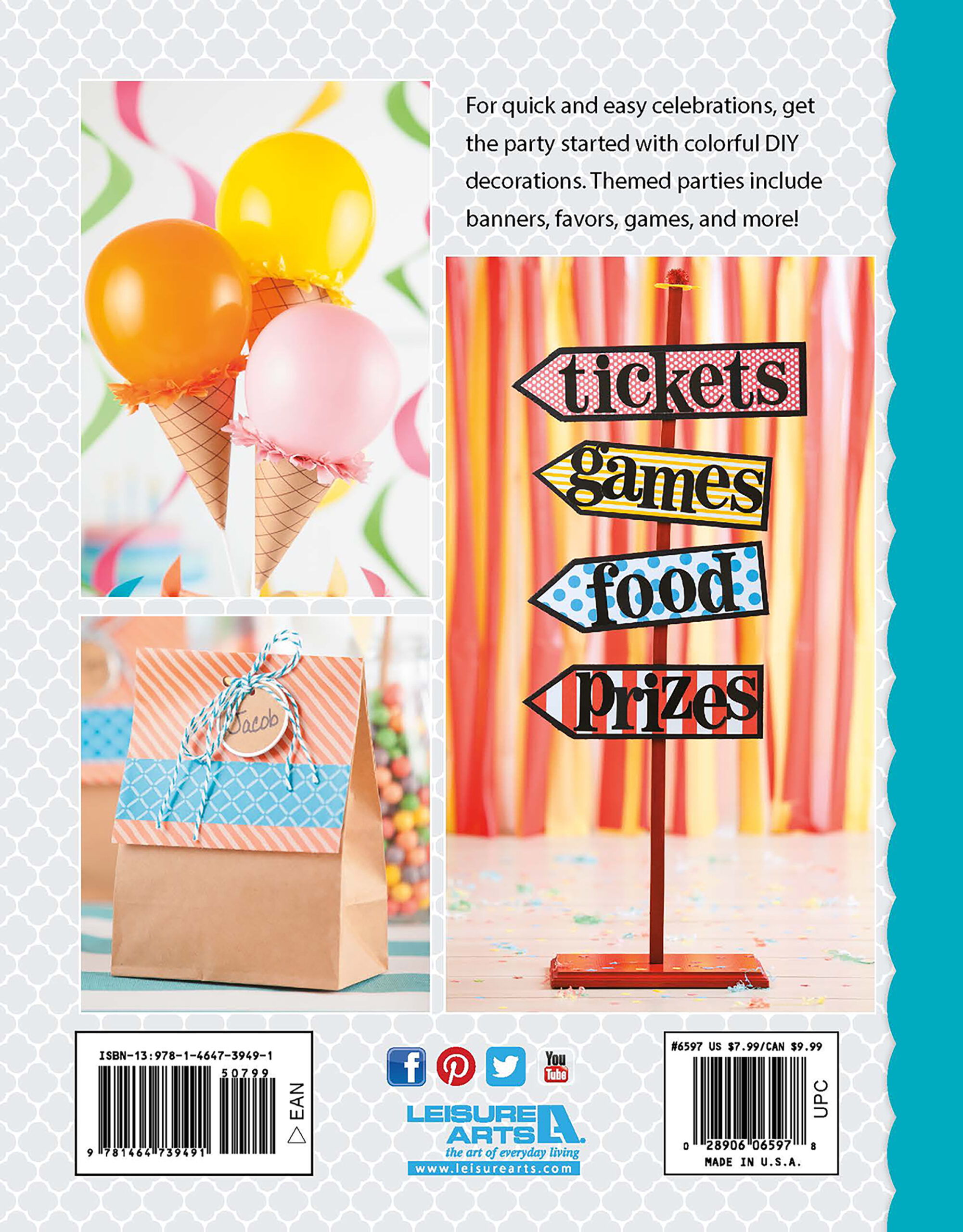 Celebrate Birthdays- For quick and easy celebrations, get the party started with colorful DIY decorations. Themed parties include banners, favors, games, and more. Choose between carnival or sweets and treats party themes. Projects include: banners, invitations, balloon flower, popcorn bags, and more. 24 pages in a softcover.