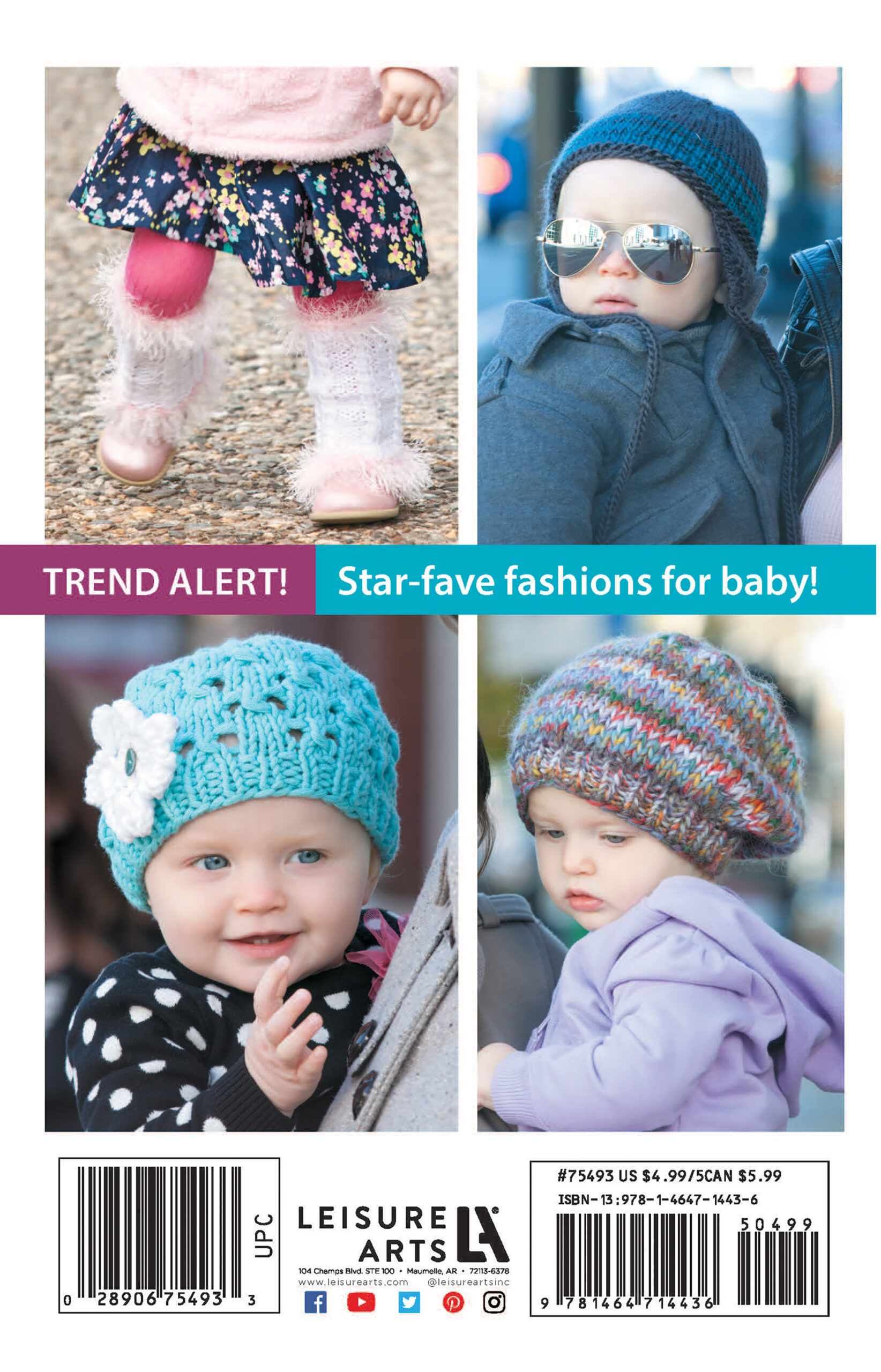 Celebrity Baby Fashion Crochet- Celebrity babies are big news, and all eyes are on what they're wearing. These 9 designs let you get the look seen when the stars have ventured out on family days. Designs include: cowl, newsboy hat, poncho, leg warmers, and more. Projects call for size 3 light, 4 worsted, or 5 bulky weight yarns and crochet hooks in US sizes F-5, H-8, I-9 and L. Includes step-by-step instructions for each design. Some designs includes instructions for multiple sizes with sizing options ranging between 3 months and 24 months. Easy skill level. 40 pages, softcover pocket size.