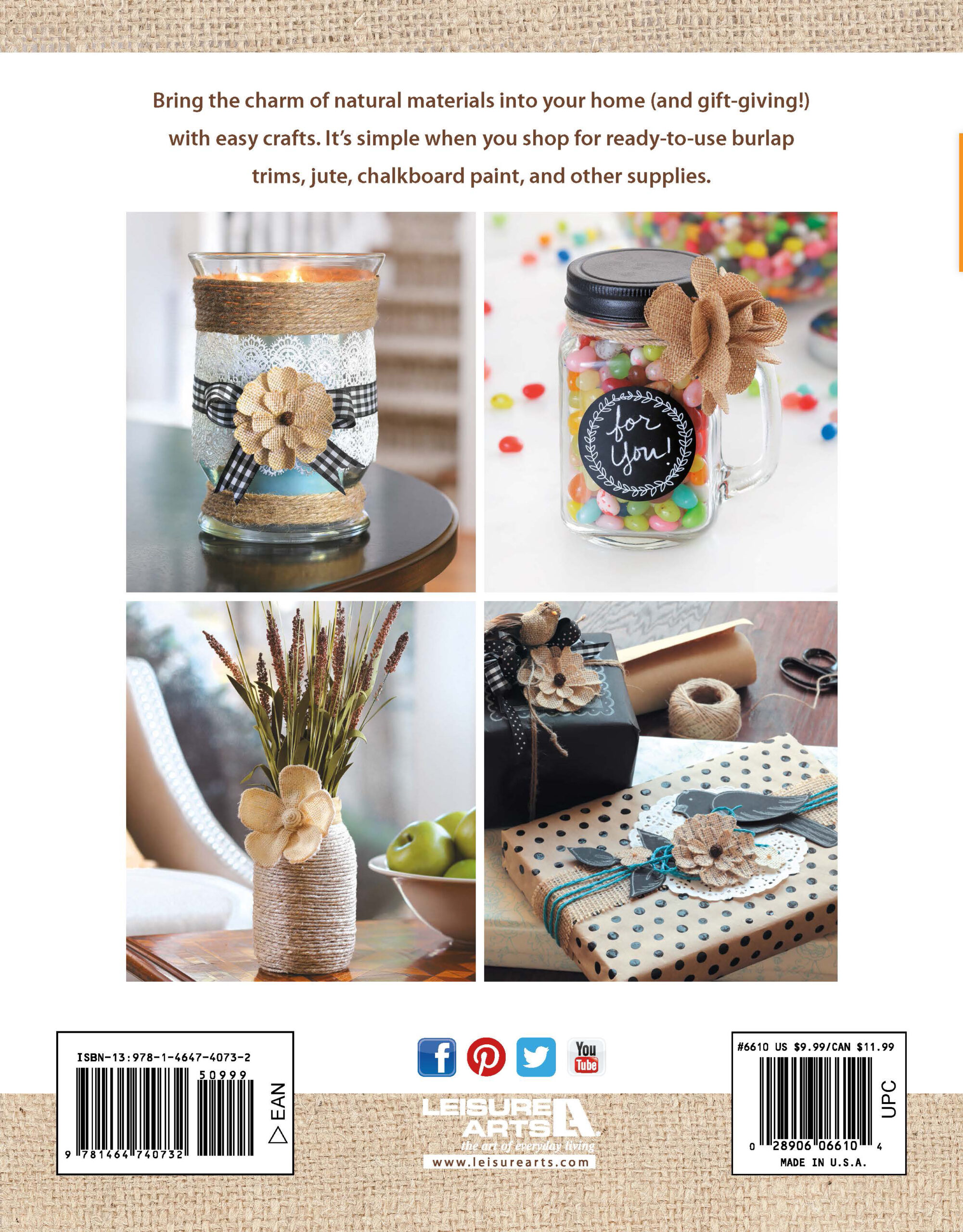 $9.99Crafting With Naturals- Decorate with burlap, jute, chicken wire, and more. Get today's hot look with home decor crafts featuring burlap, jute, kraft paper, wood, moss, chicken wire, glass, and chalkboard paint. 16 different projects will add rustic yet chic touches throughout your home. Projects include: planters, gift packages, candle holder, lampshade, jars, vases, wine glasses, kitchen crate, wall hanging, wreath, cloche, and frame. 32 pages in a softcover.