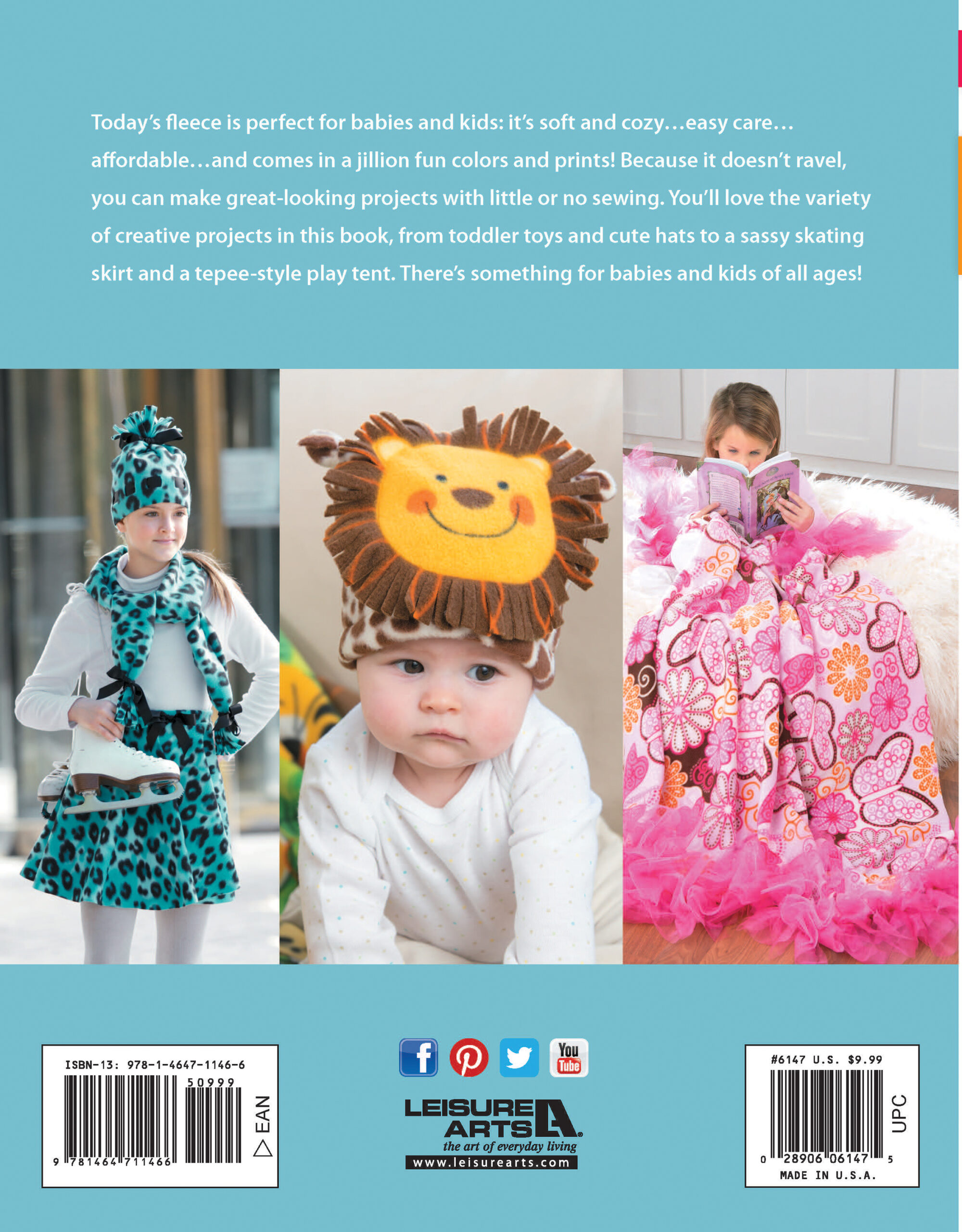 $7.99Leisure Arts Fleece for Babies & Kids Craft eBook- 20 easy fleece projects with little to no sewing. Knot and weave your way into awesome projects to make for your favorite kids and babies. Designs include: monster throw, sassy throw, jungle baby hat, dog hat, bear hat, dress, tent, stocking cap, beret and many more. Some designs require simple machine sewing. Includes step-by-step instructions for each design. Easy skill level. 34 pages, PDF download.