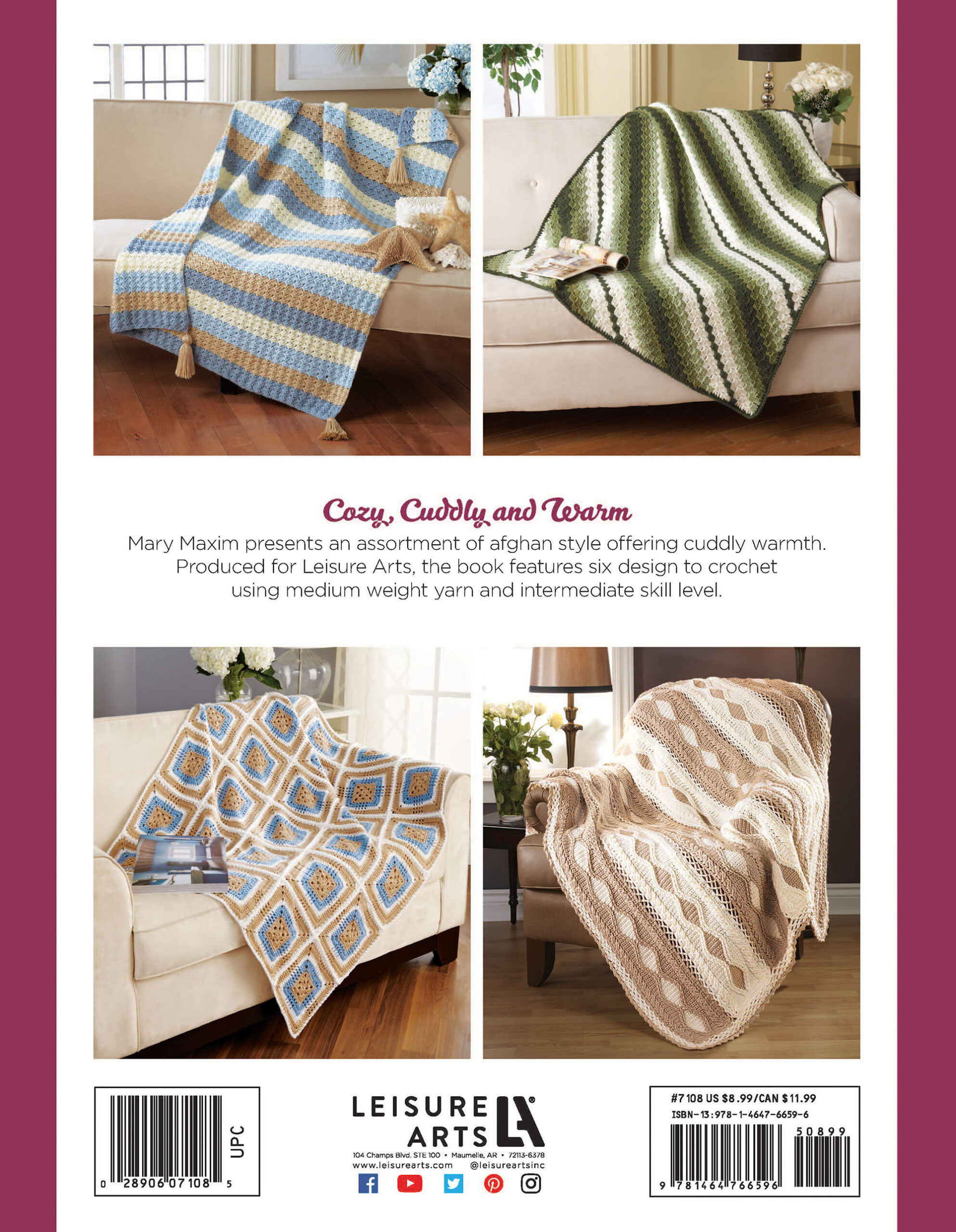 $8.99Crochet Cozy Comfort Afghans- Curl up with one of your own cozy creations from the best of Mary Maxim collection. Features six designs to crochet using various techniques to give you unique looks and add skills to your crochet toolbox. General crochet instructions, step-by-step pattern instructions, diagrams and full-color photos included. Designs include: diagonal stripes, vertical stripes, reflections, perfectly plaid, and more. Projects use US size 4 worsted weight yarn and varied hook sizes ranging from H-8 to J-10; 5 to 6 millimeters. Finished afghan sizes measure between 40"x 50" and 54"x 58". Intermediate skill level. 24 pages, softcover.