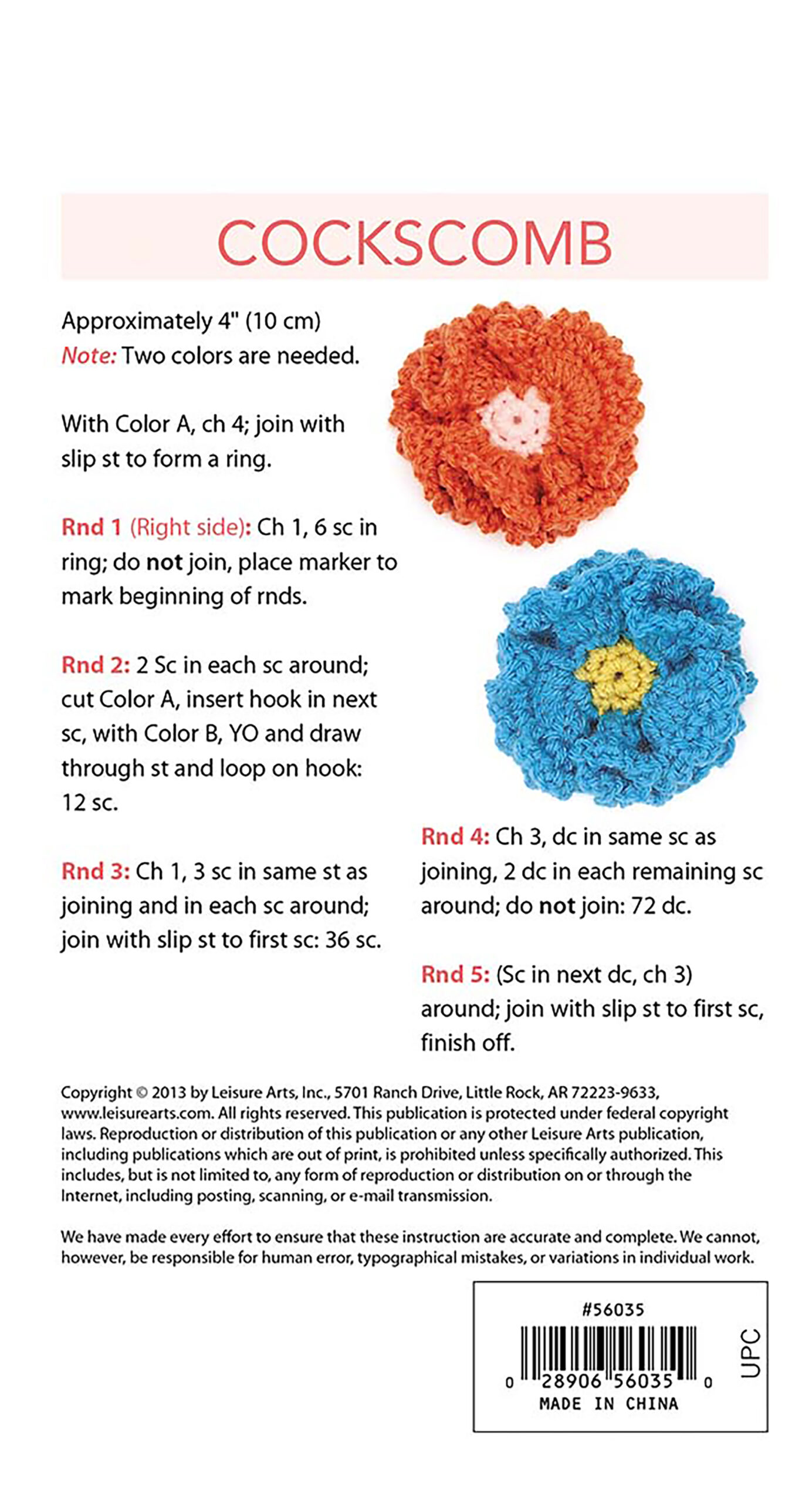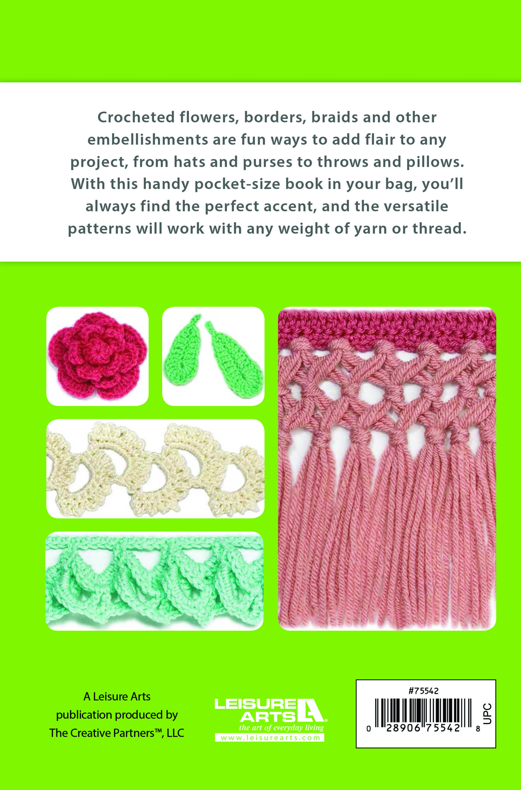 $9.99Crochet Edging Stitch Guide- Edgings make everything special. Whether you want a quiet touch of lace or a vibrant splash of color, you'll find the perfect crochet trim in this extensive collection of styles and widths. Use them on fabric items, knit or crochet designs, crafts, and more. Designs include: ornate scallops, zigzag, border roses, bachelor buttons, and more. Each design can be stitched with any yarn weight and hook size to suit your specific project needs. Sample edgings depicted in the were stitched in size 2 fine weight yarn. Great for any skill level. 96 pages, softcover pocket size.