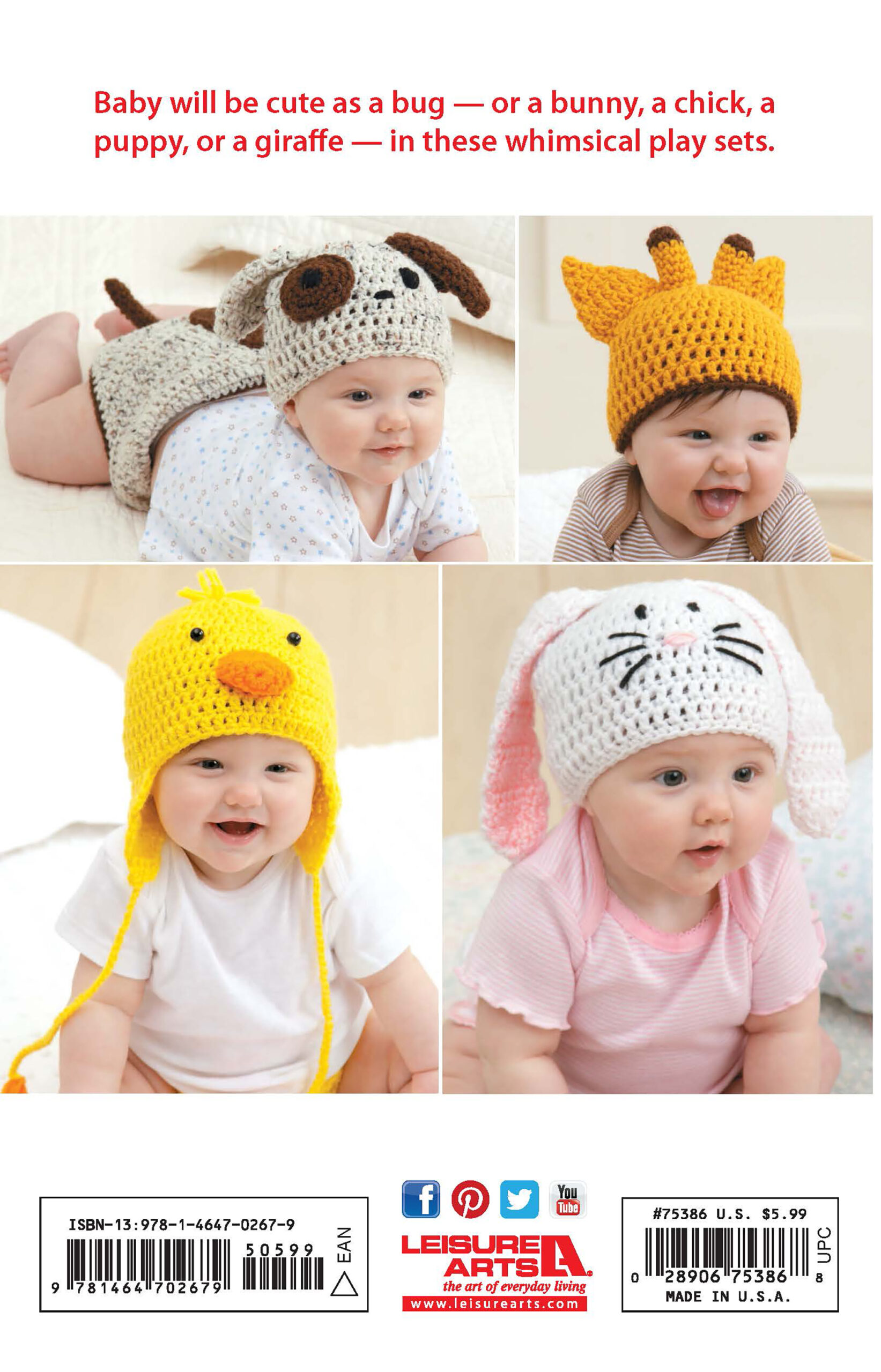 $5.99Crochet Hats & Diaper Covers- Make your baby snug as a bug in a rug with these hat and diaper cover sets. With these whimsical play set designs, your baby will be the talk of the animal kingdom. Designs include: ladybug, bunny, chick, puppy, and giraffe. Most finished diaper covers measure approximately 14 1/2" long with an adjustable waist. Hats measures 15" to 18" in circumference when crocheted to gauge. Designed for ages 3 to 6 months. Beginner plus skill level. Use with size 4 medium weight yarn and US I hook. Pocket size with 48 pages in a softcover.