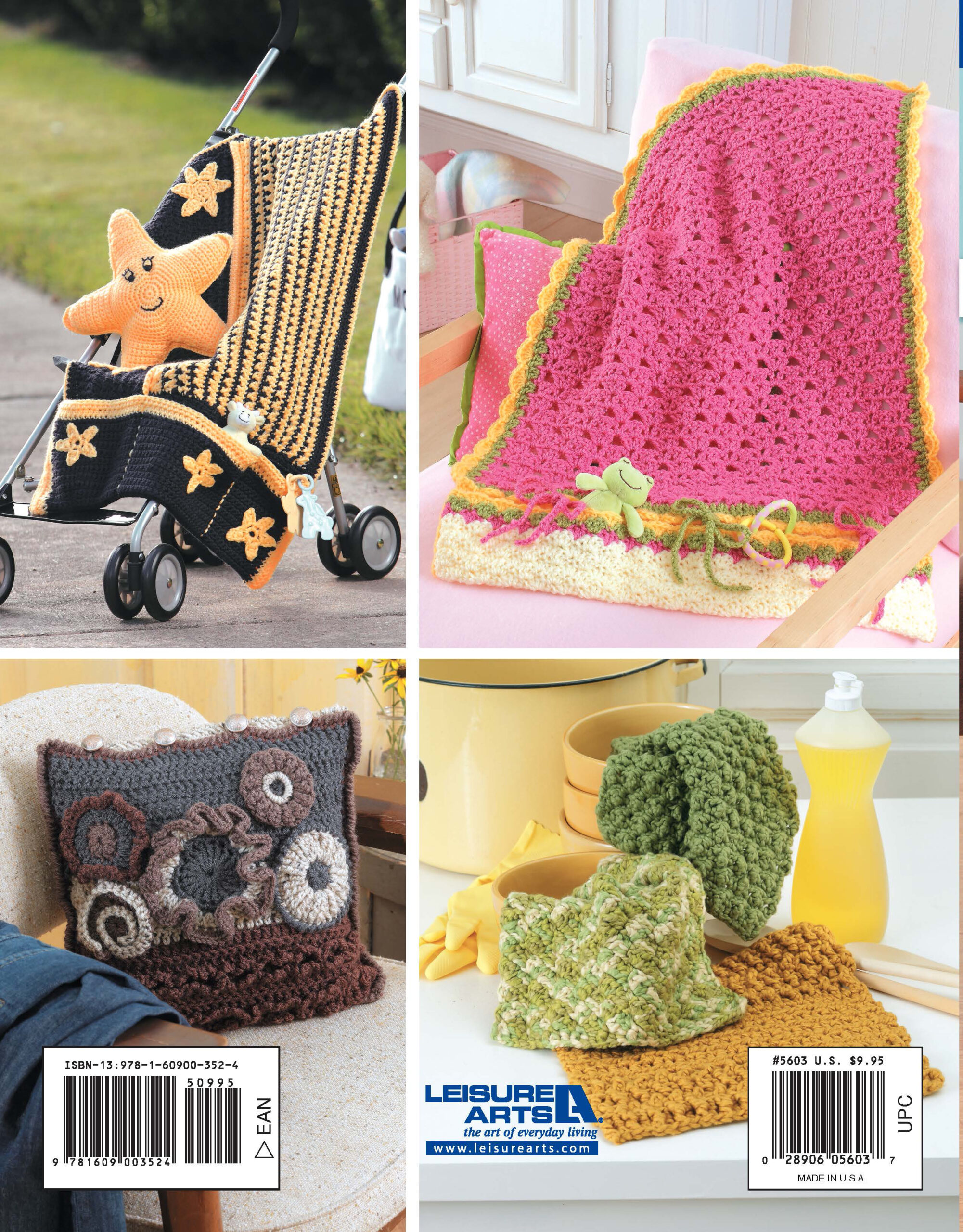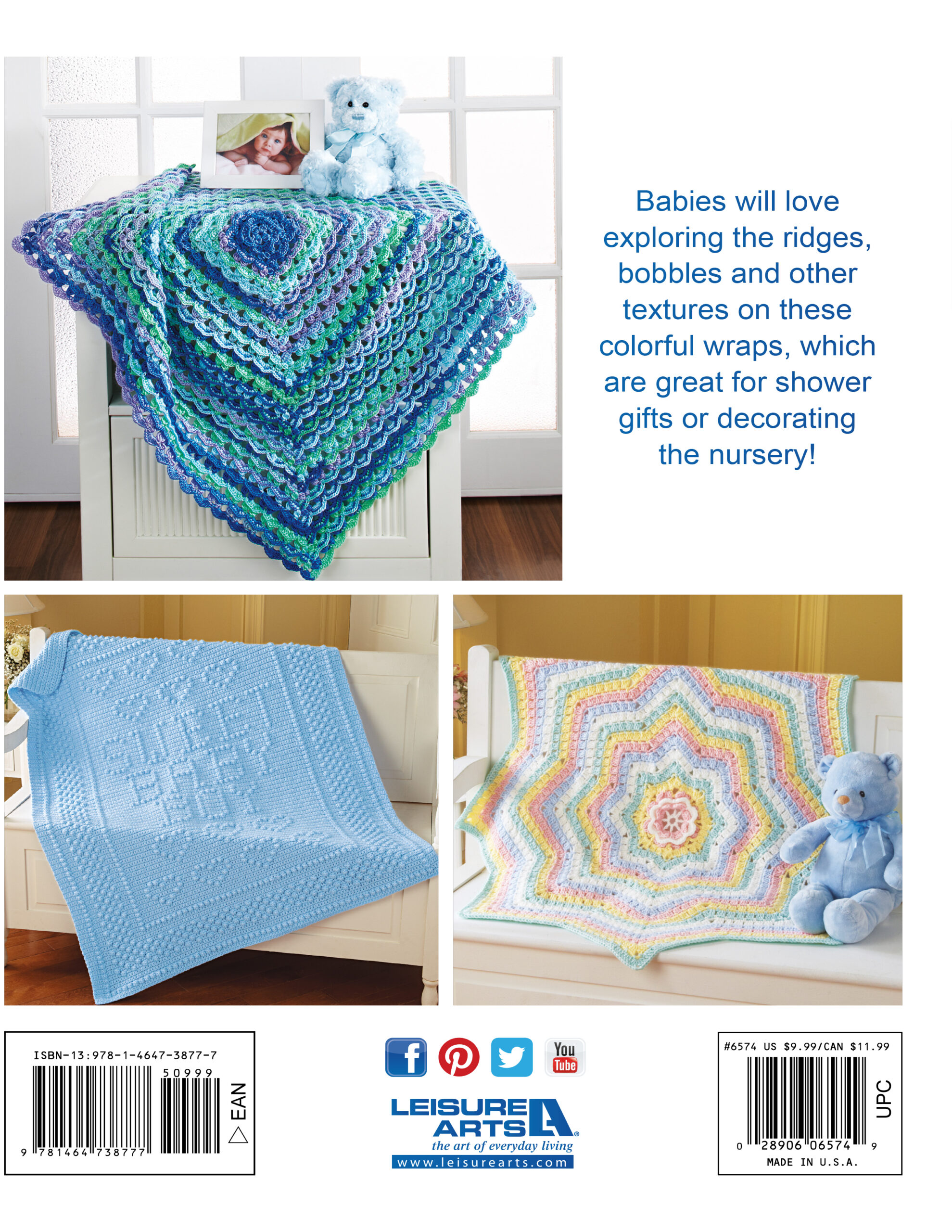 $5.99Crochet Sweet Baby Blankets- This sweet collection of warm, cozy, blankets for baby is sure to please. Create beautiful gifts that can be cherished for a life-time from these 8 whimsical and cute patterns. Designs include: bunny haven, bunny parade, cotton tails, diagonal puffs, pretty & puffy, pretty bobbles, pretty squares and puffy bobbles; made using a variety of crochet techniques, like cluster and bobble stitches, for unique looks. Includes step-by-step instructions for each project, information on each stitch used and an additional crochet guide. Projects require US size 3 light weight yarn in a variety of colors and a crochet hook in size H-8 or G-6; 4 or 5 millimeter hooks. Finished project sizes range from approximately 31 1/2"x 42" and 37 1/2"x 49". Beginner friendly, easy skill level projects. 48 pages, softcover.
